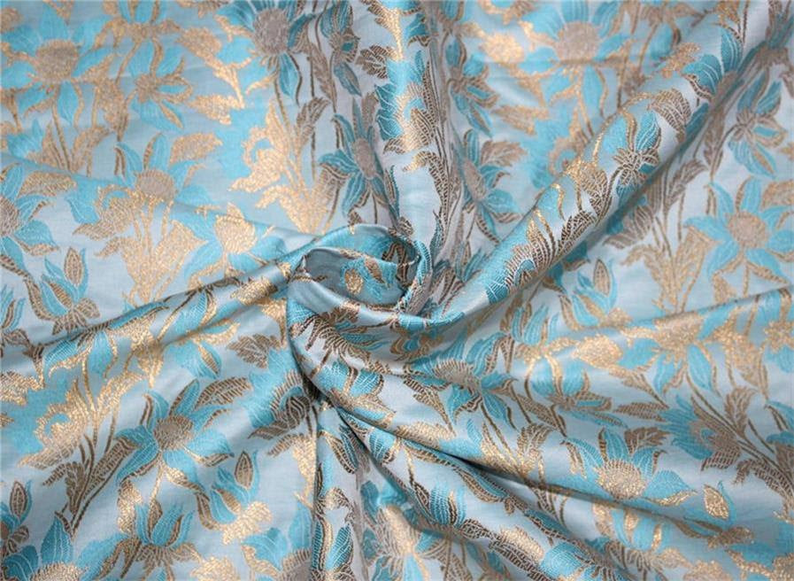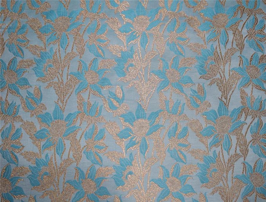 Brocade fabric blue x metallic gold color 44"wide