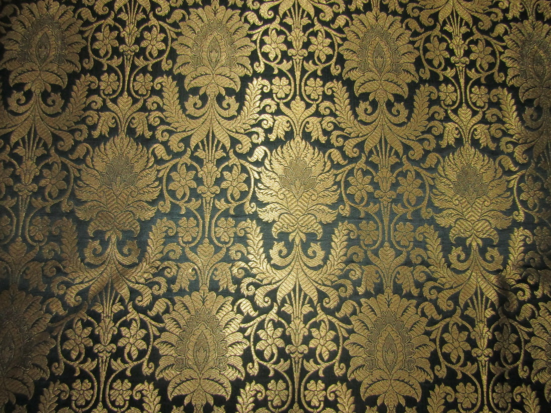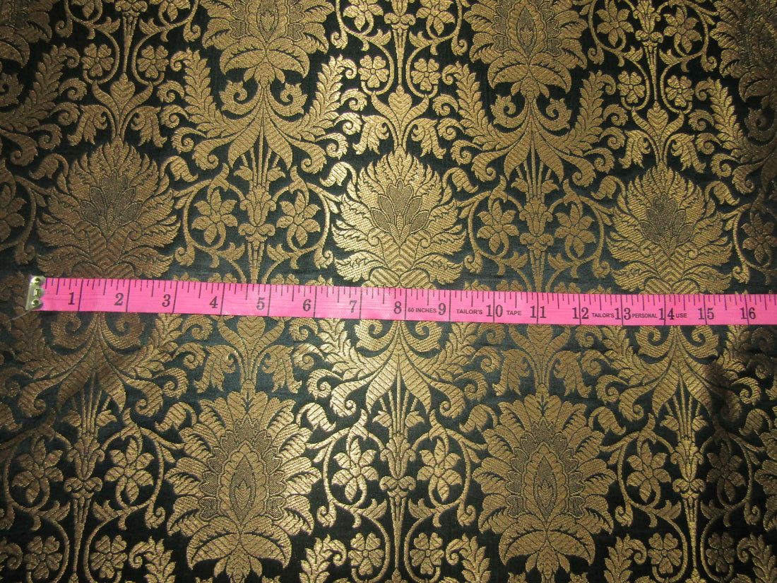 Brocade fabric DARK BOTTLE GREEN x metallic gold 44" wide