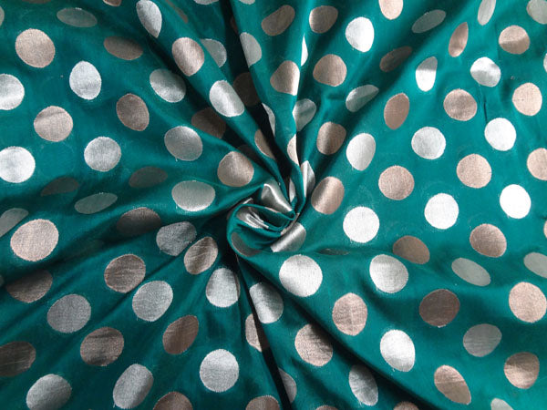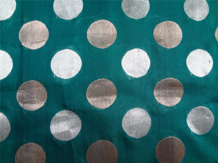 Brocade fabric Green X Metallic Gold Silver 44"Cut Pcs 3.40 yrd