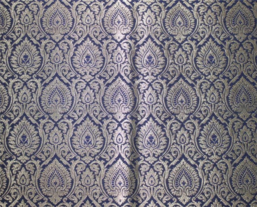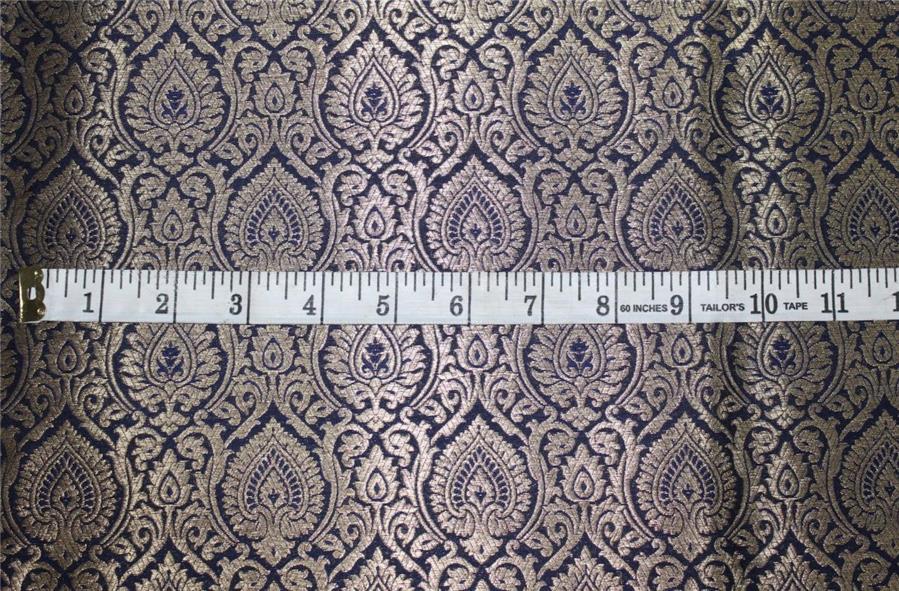 Brocade fabric navy blue x metallic gold color 44"wide