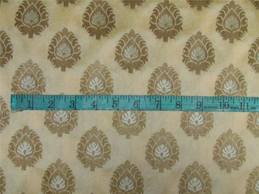 Brocade FABRIC Pale yellow peach X metallic gold color 44"