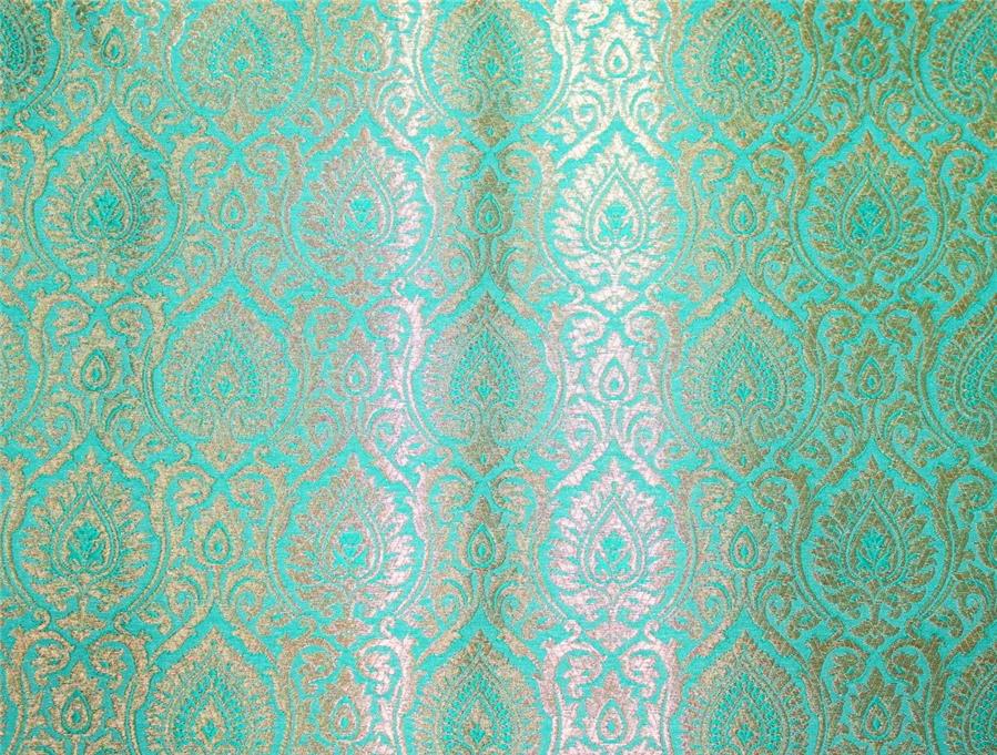 Brocade fabric pastel green x metallic gold color 44"wide