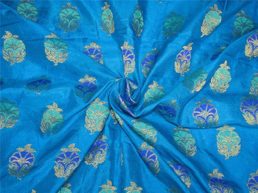 Brocade Fabric Peacock blue x gold 44"