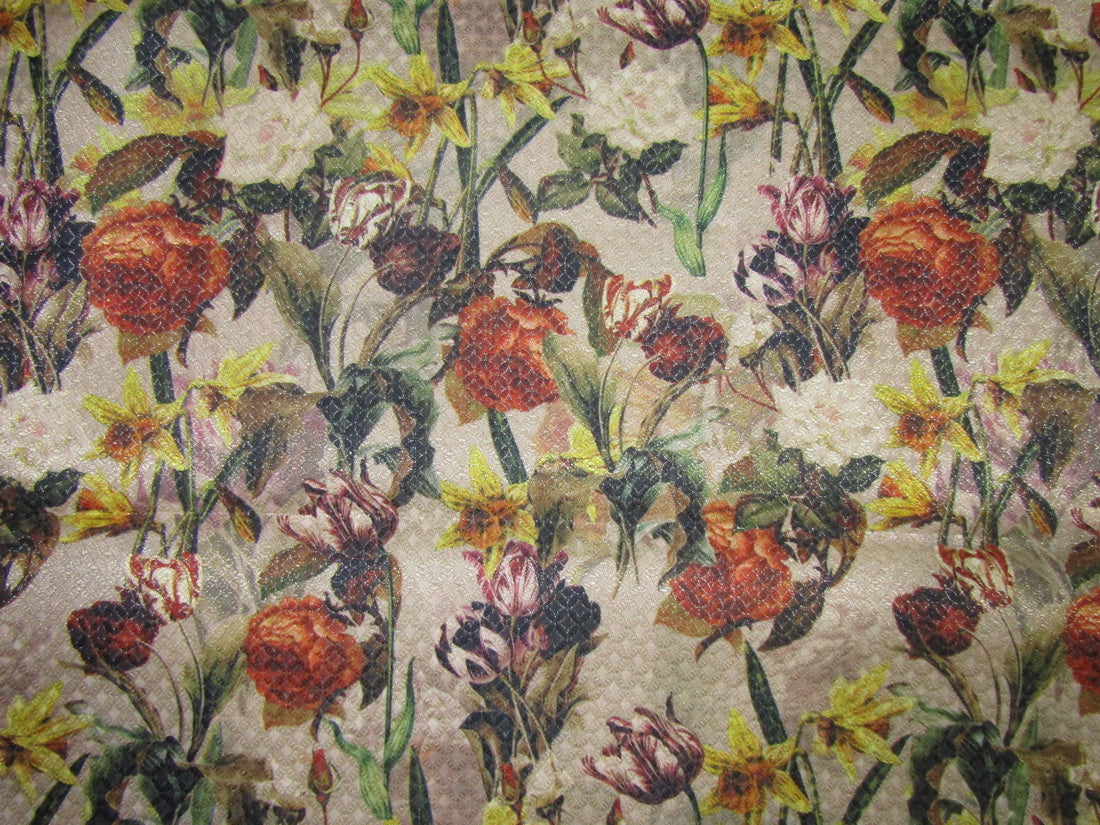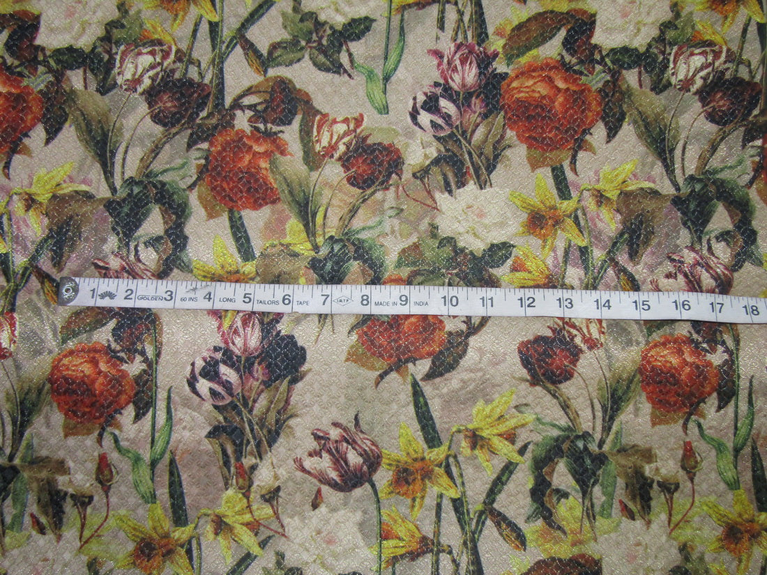 Brocade JACQUARD 44" multi color floral with a self diamond design in the background
