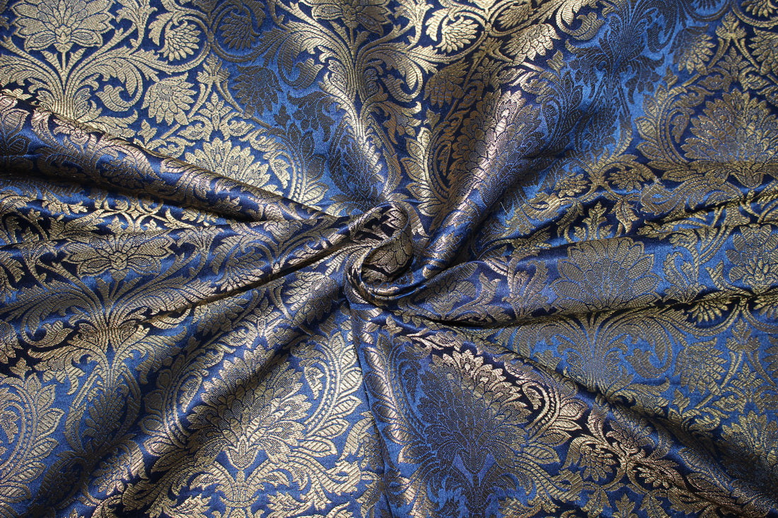 Brocade jacquard Fabric DUSTY NAVY x METALIC gold color 44"