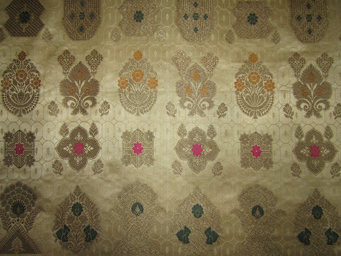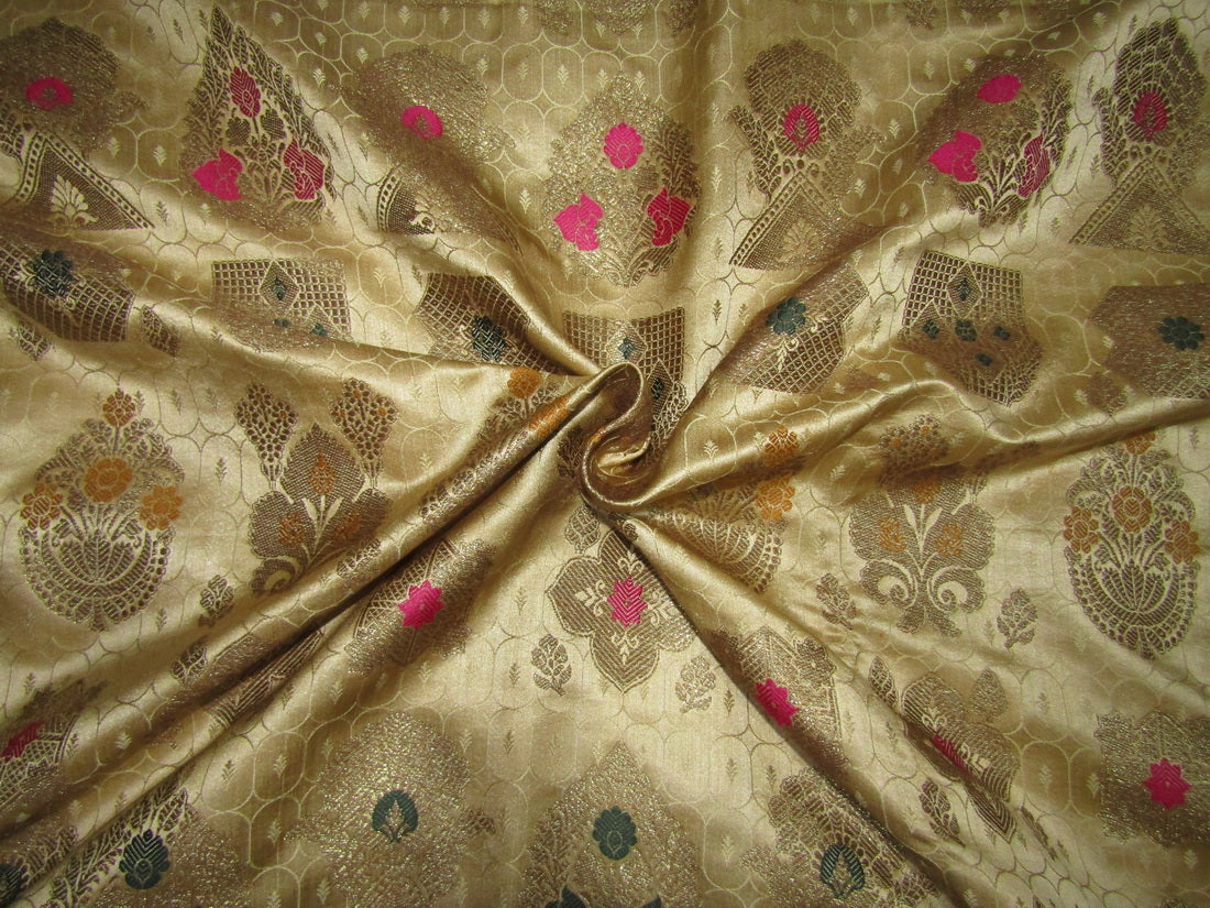 BROCADE jacquard FABRIC gold and multi color x metalic gold COLOR 44" wide