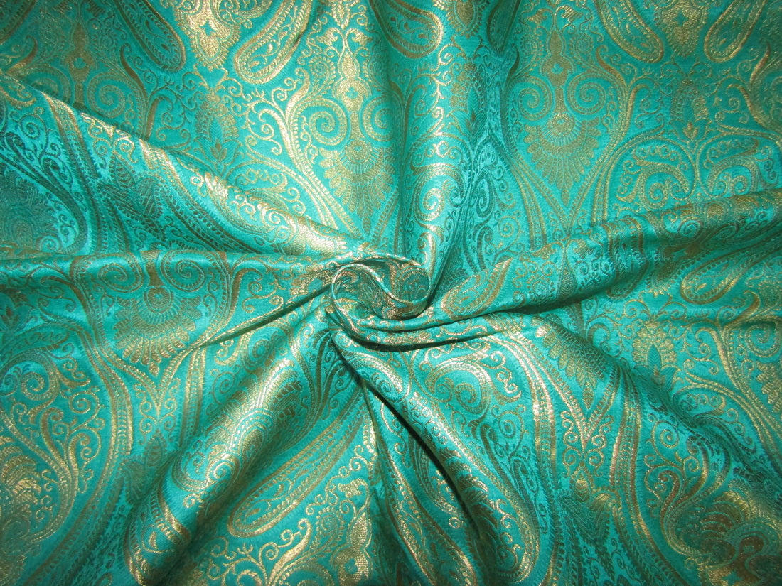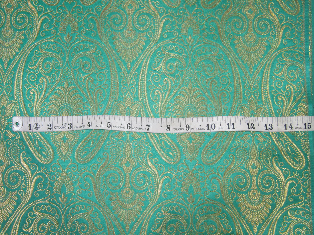 Brocade jacquard Fabric green x METALIC gold color 44"