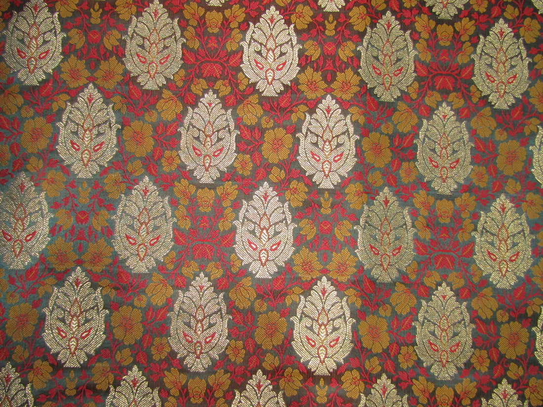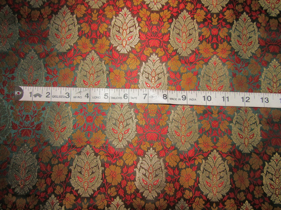 BROCADE jacquard FABRIC mustard ,bottle green,red x metallic gold color 44" wide