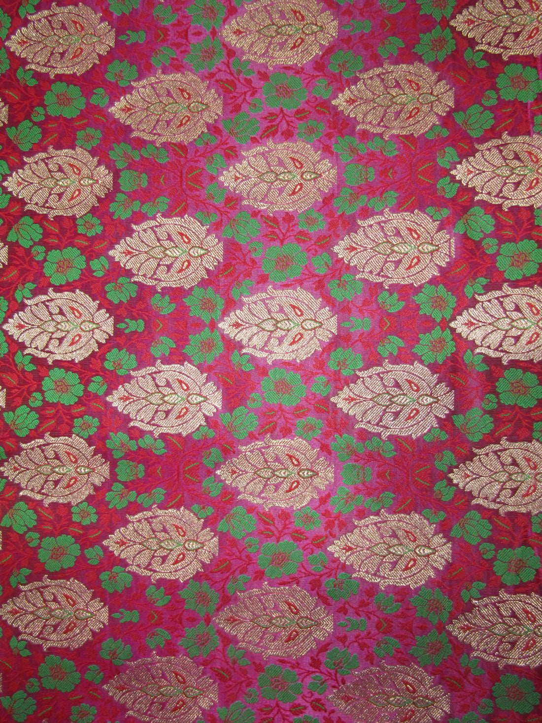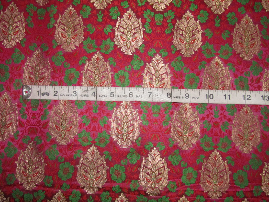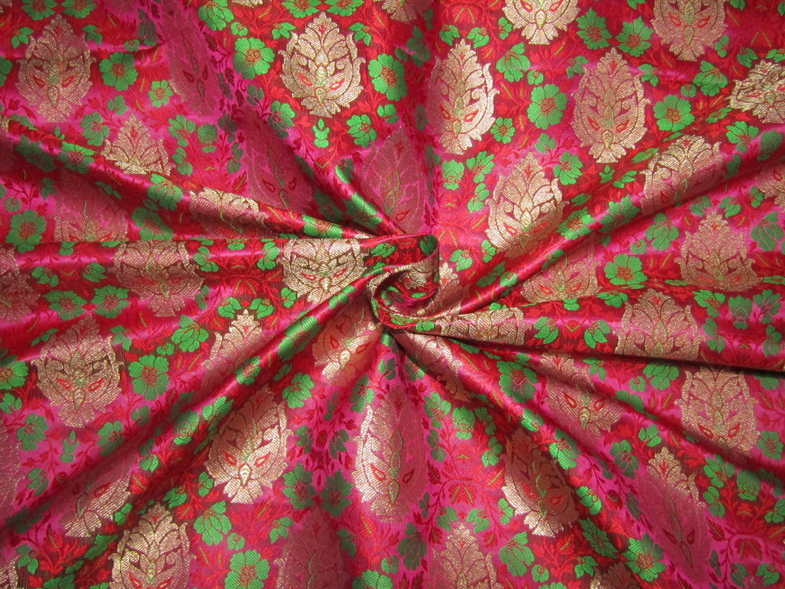 BROCADE jacquard FABRIC pink ,green x metalic gold COLOR 44" wide