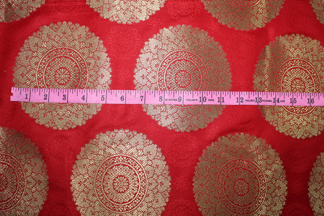 Brocade jacquard Fabric RED x METALIC gold color 44"