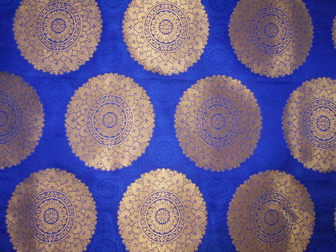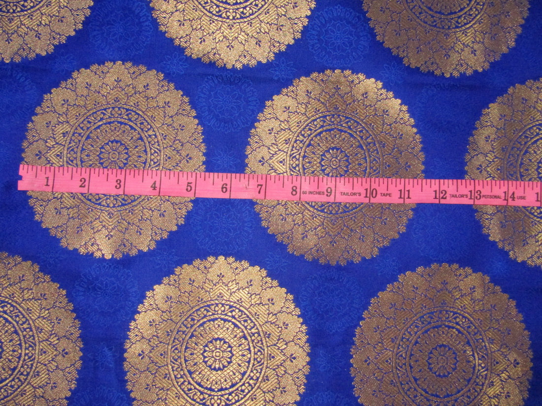 Brocade jacquard Fabric ROYAL BLUE x METALIC gold color 44"