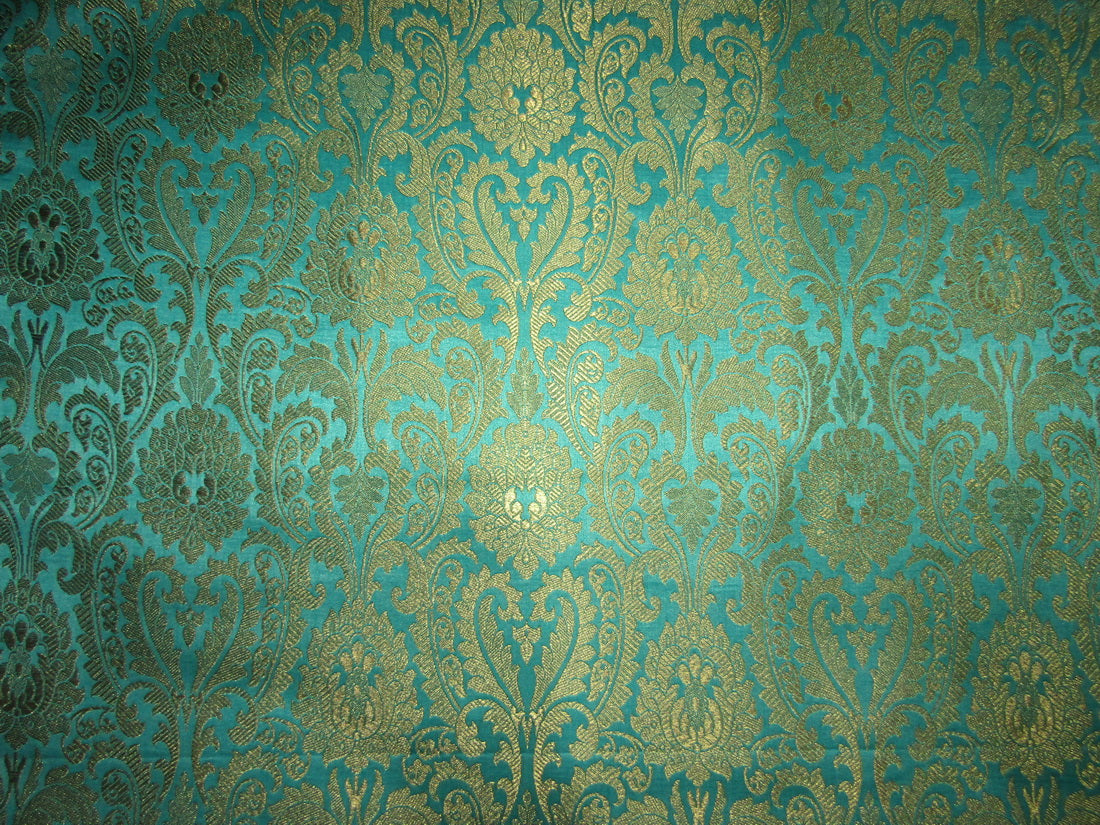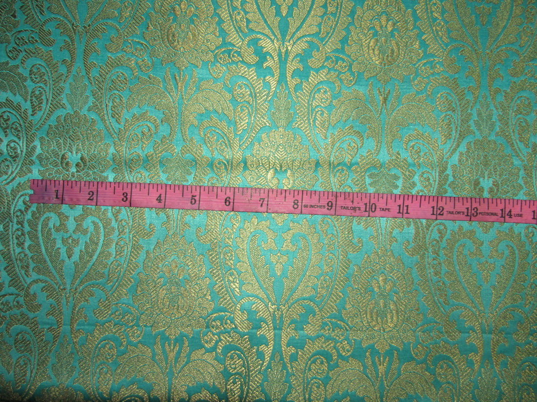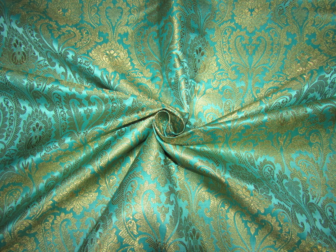 Brocade Jacquard Fabric sea green x metalic gold 34"