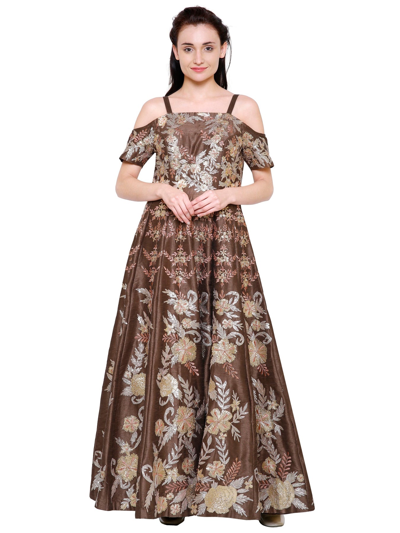 Silk Brocade fabric brown color 44" wide BRO747[1]