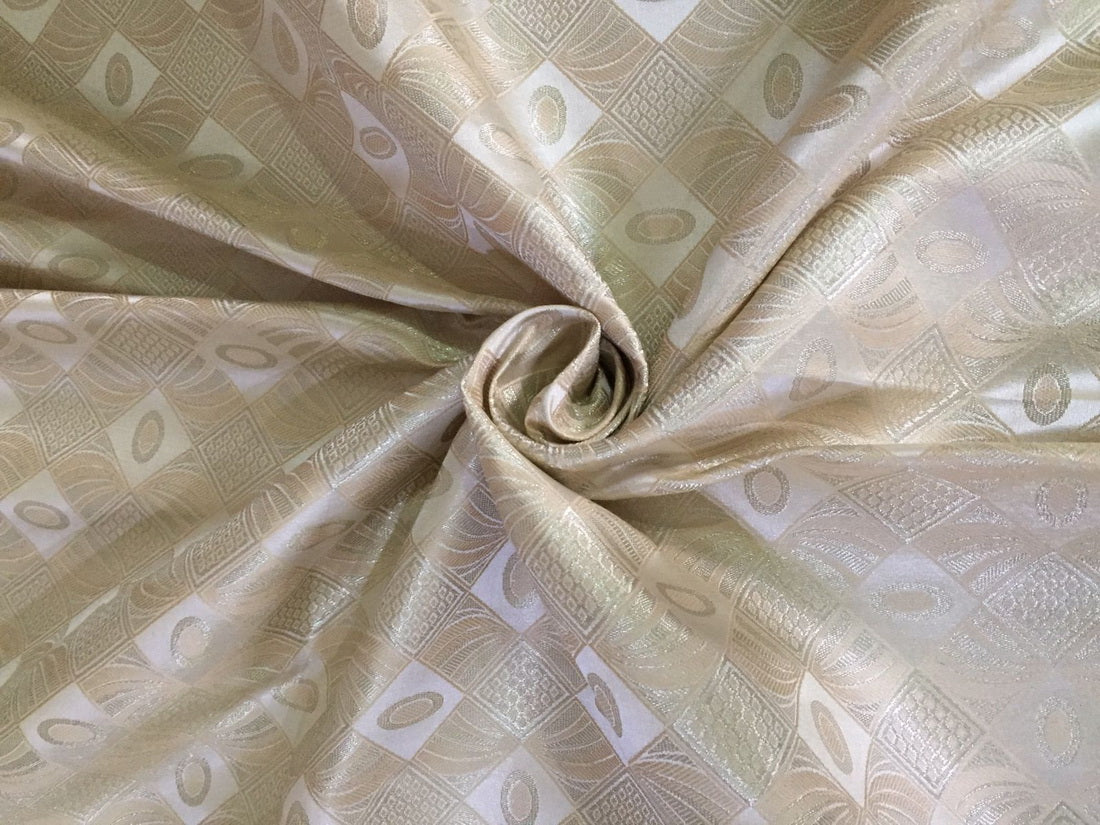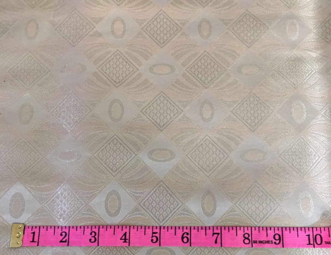 Silk Brocade fabric cream x metallic silver color 44" wide BRO788[2]