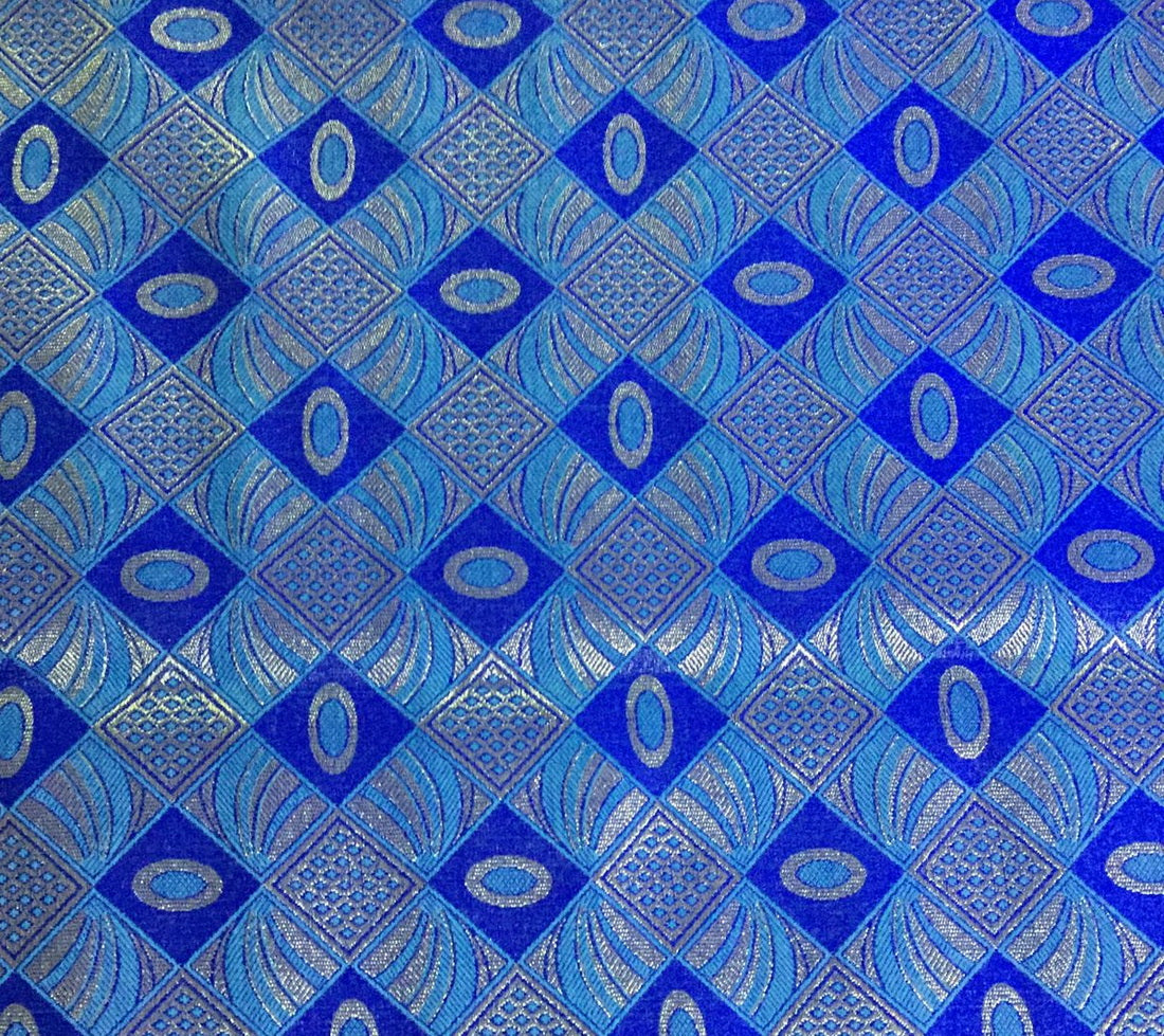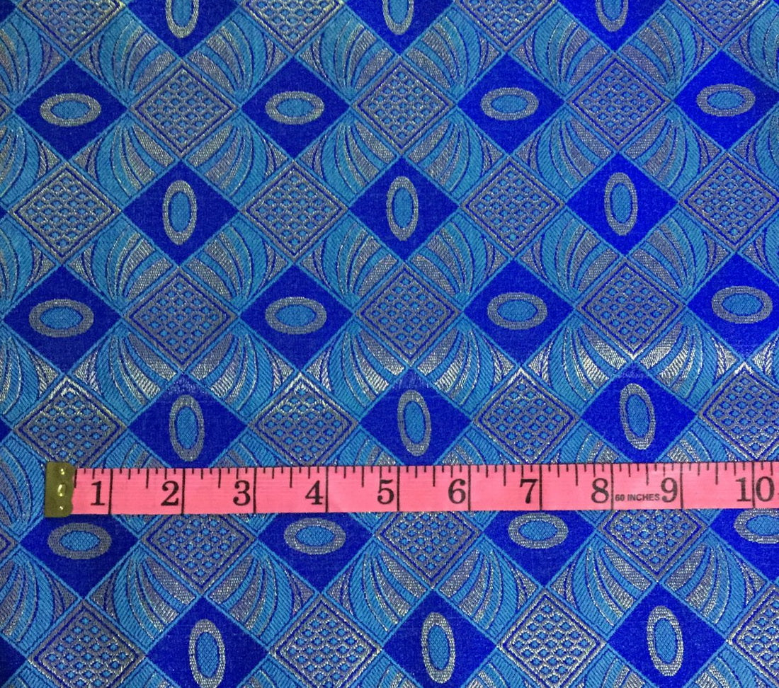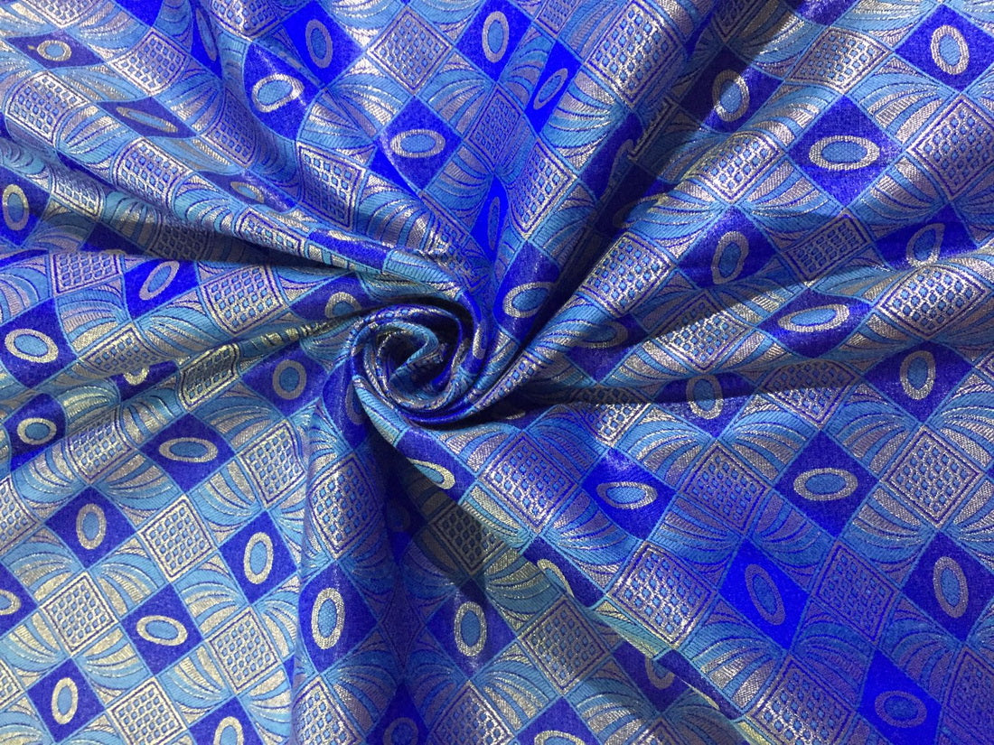 Silk Brocade fabric royal blue , blue x metallic gold color 44" wide BRO788[5]