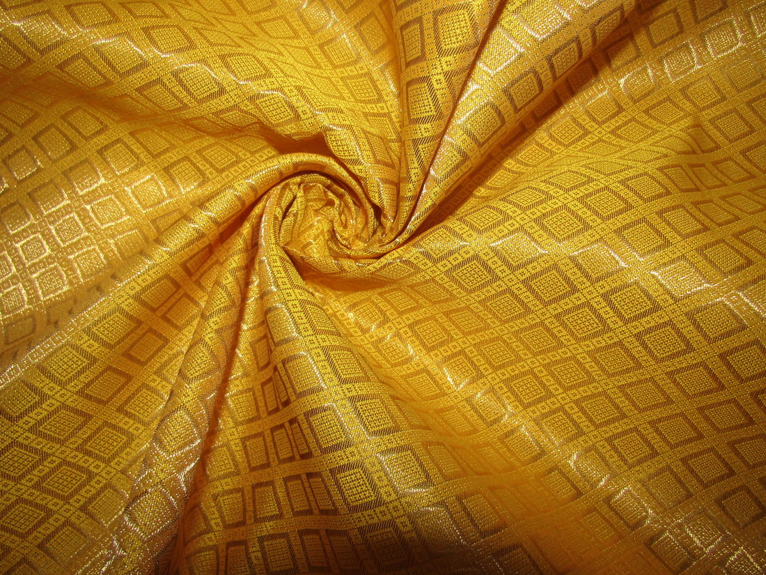 Silk Brocade fabric yellow x metallic gold 44" wide BRO749[3]