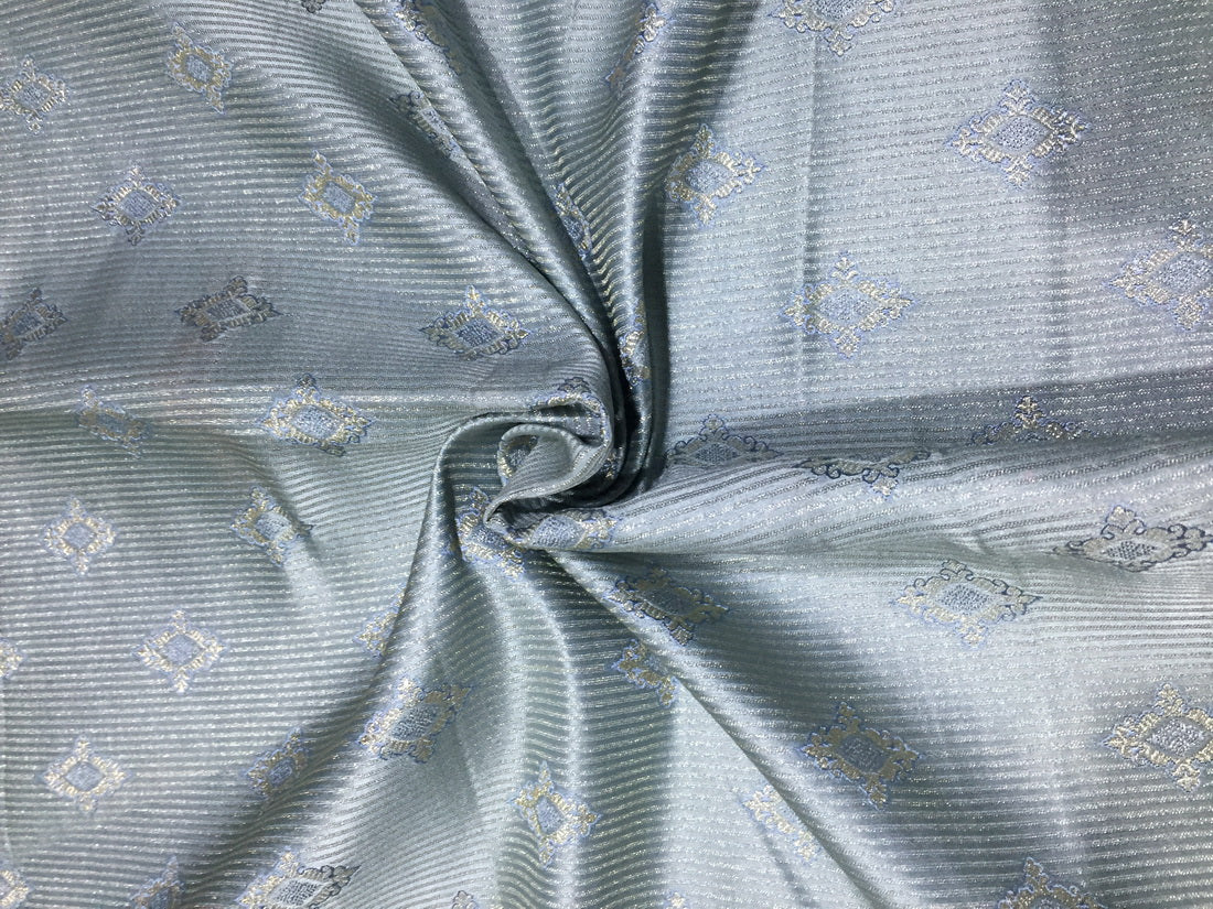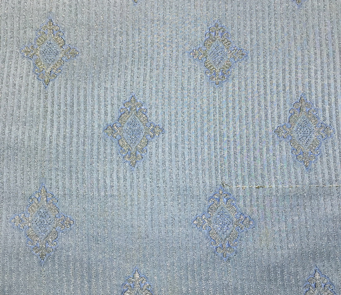 Brocade fabric Dusty blue x metallic gold color ~ 44"~ SINGLE LENGTH 3 YARDS