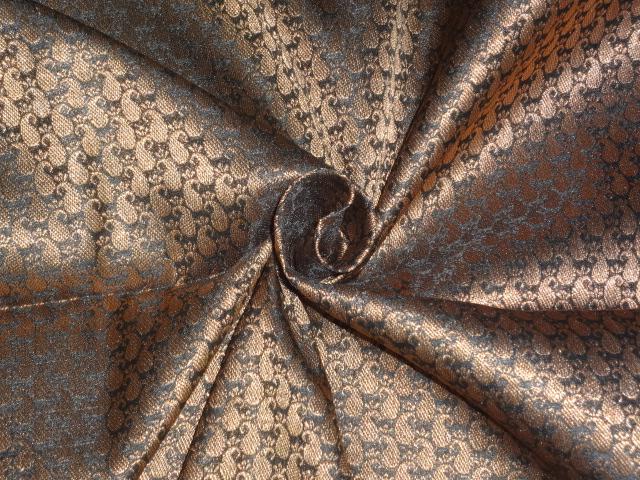 BROCADE 44"INCHES BLACK & OLD METALLIC GOLD COLOR