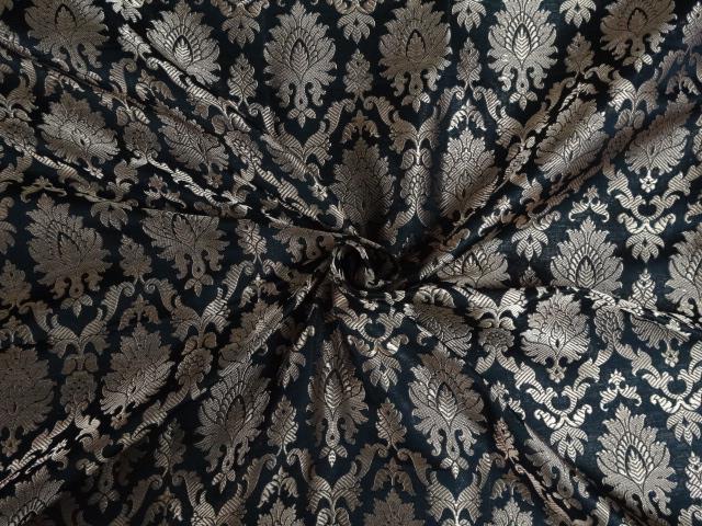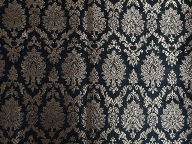 BROCADE FABRIC BLACK WITH COPPER GOLD COLOR