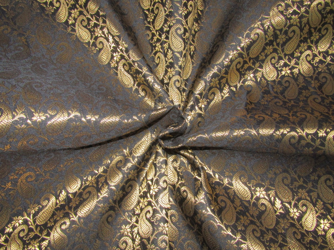 Brocade fabric black x metallic gold color 44" wide BRO760A[1]