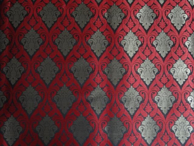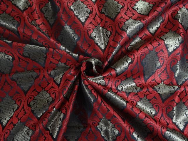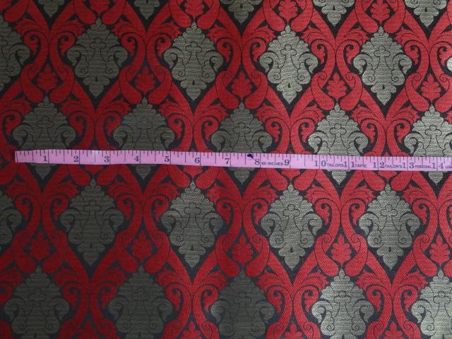 BROCADE FABRIC BLACK,LIPSTICK RED X METALLIC GOLD