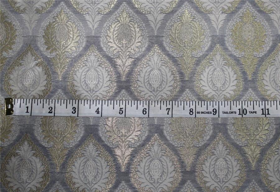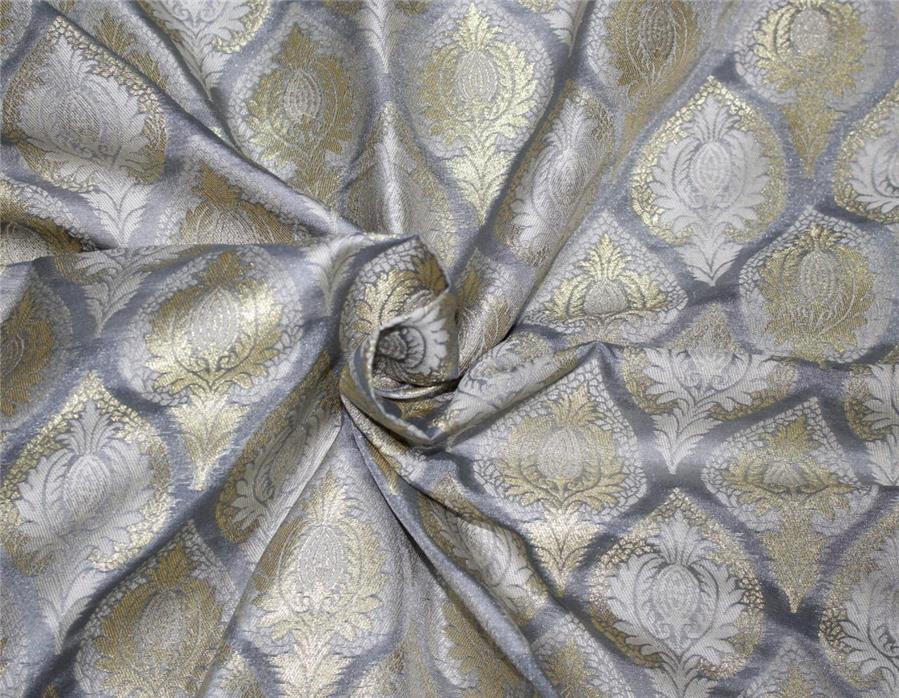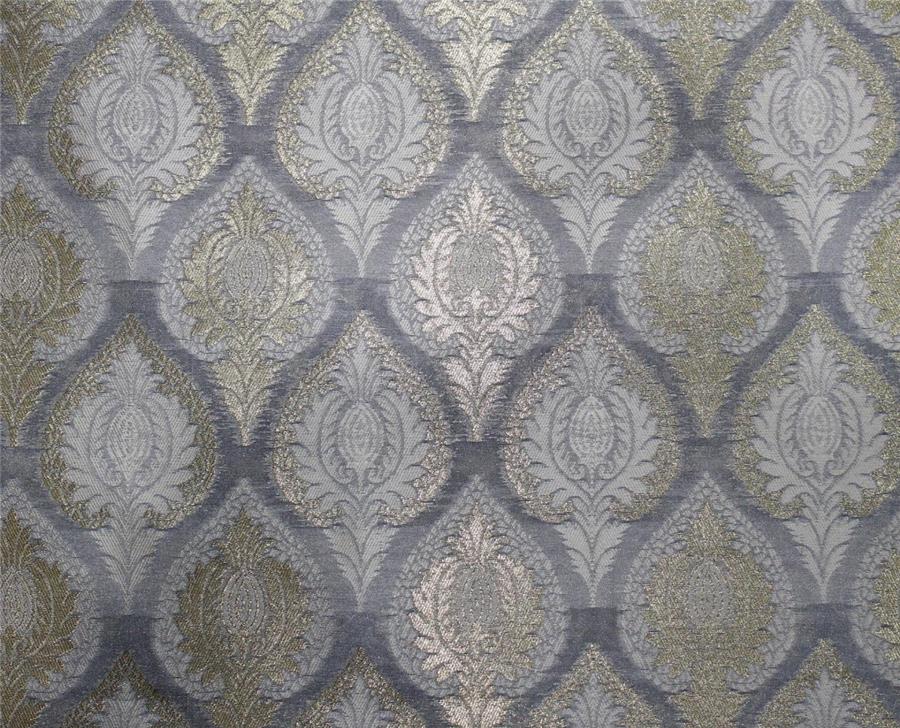 Brocade fabric greyish blue x metallic gold color 44"wide
