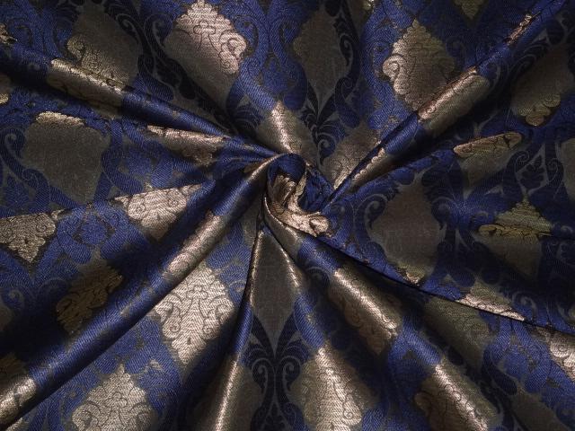 BROCADE FABRIC JET BLACK,ROYAL BLUE X METALLIC GOLD