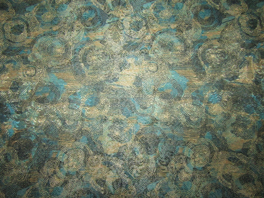 Brocade JACQUARD 44" BLUE BLACK AND GOLD geometric design