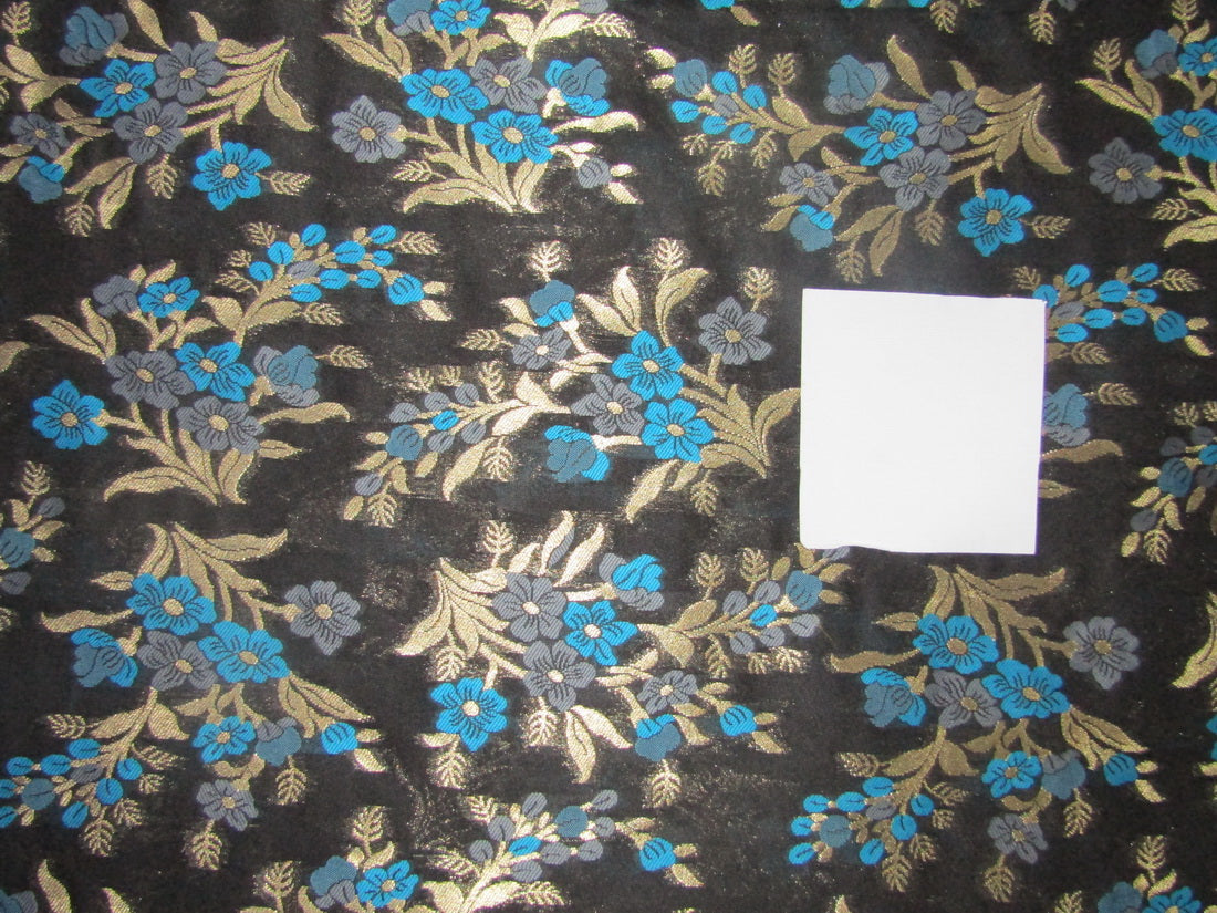 Brocade jacquard fabric 44" blue/grey floral with metalic gold