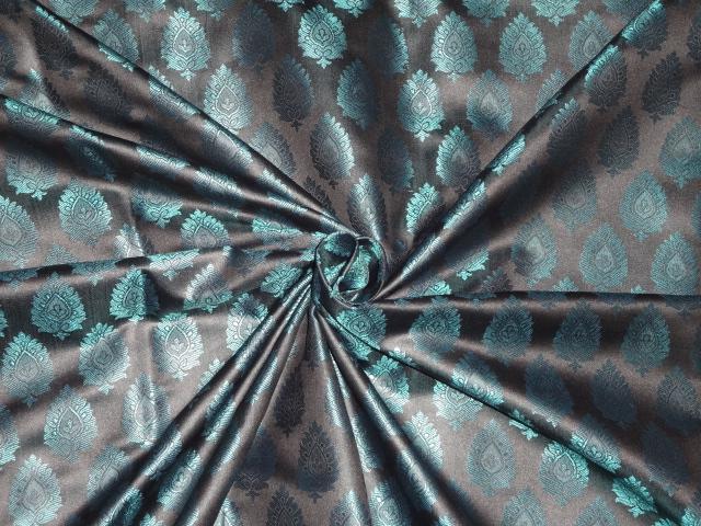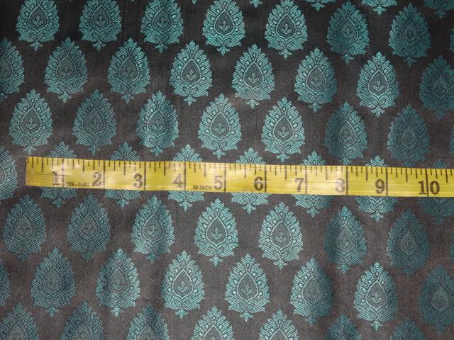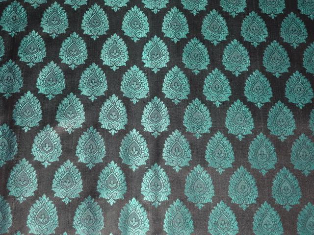BROCADE JACQUARD FABRIC KINGFISHER GREEN & BLACK