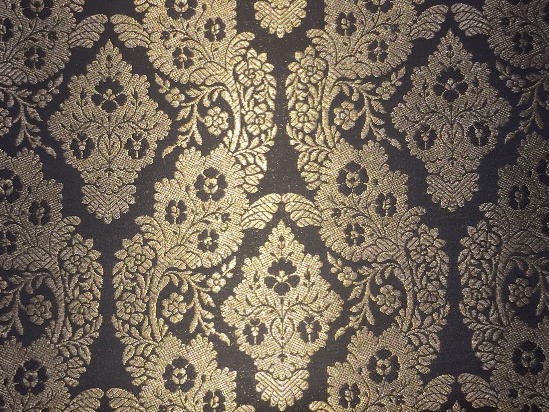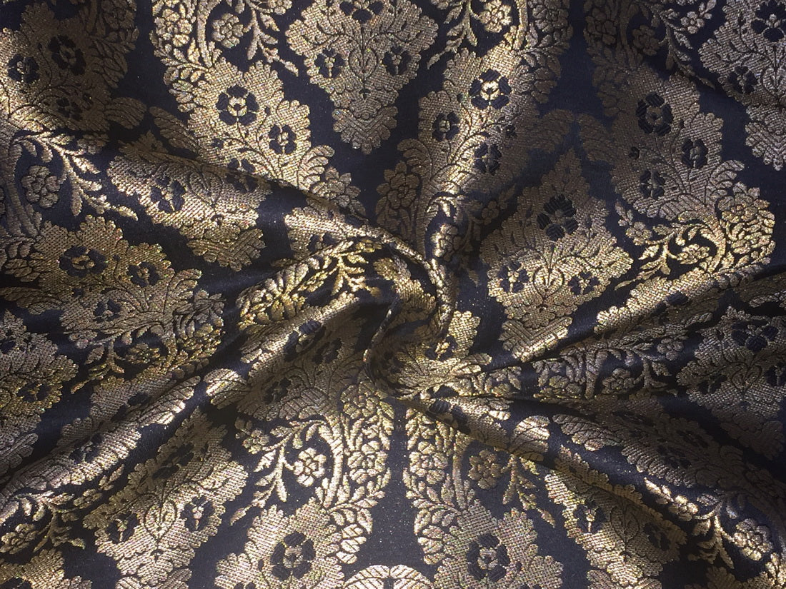 Silk Brocade fabric black x metallic gold 44" wide BRO610[1]