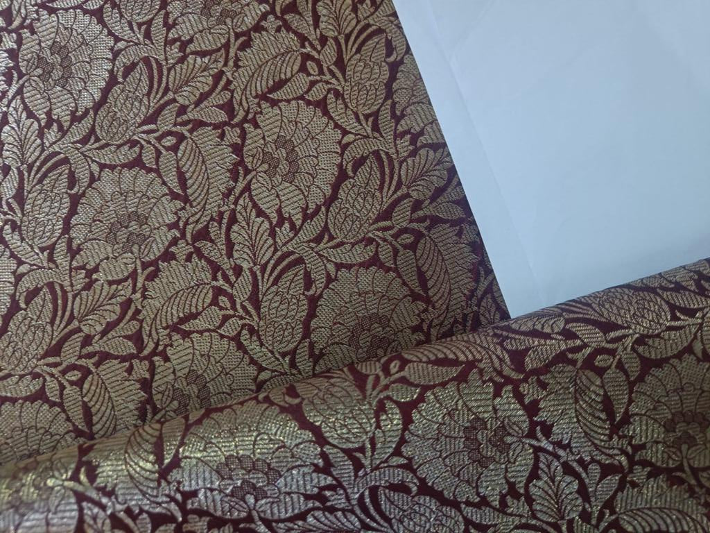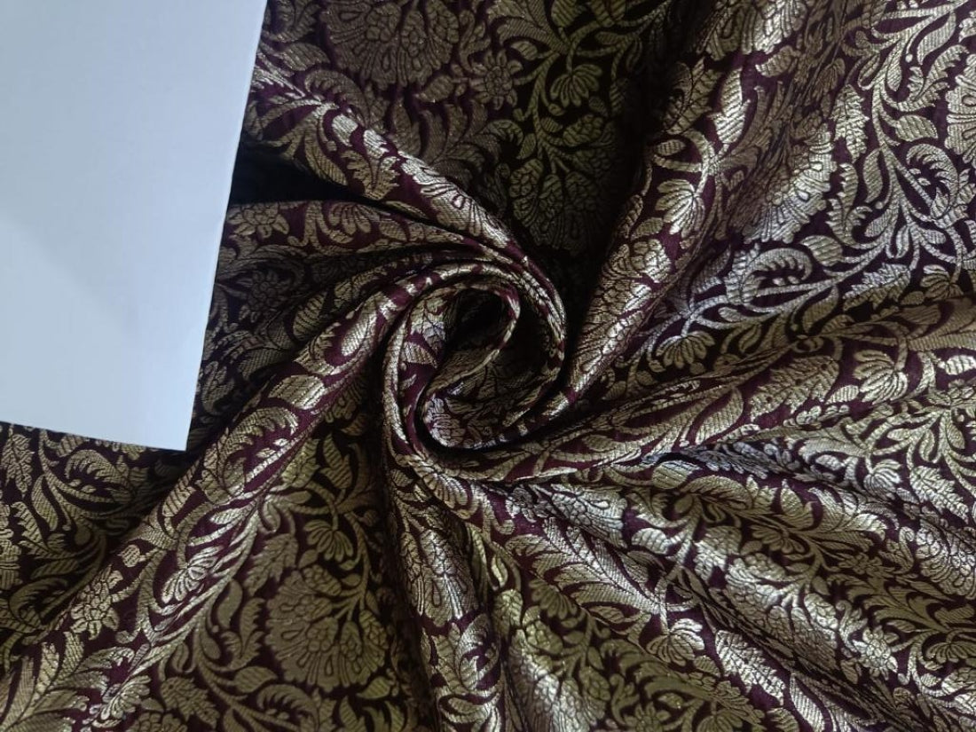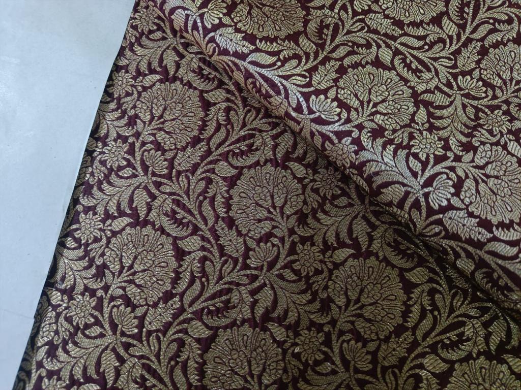 Silk Brocade fabric 44" wide available in 6 colors [BLACK NAVY WINE GOLD BURGUNDY PURPLE]BRO883
