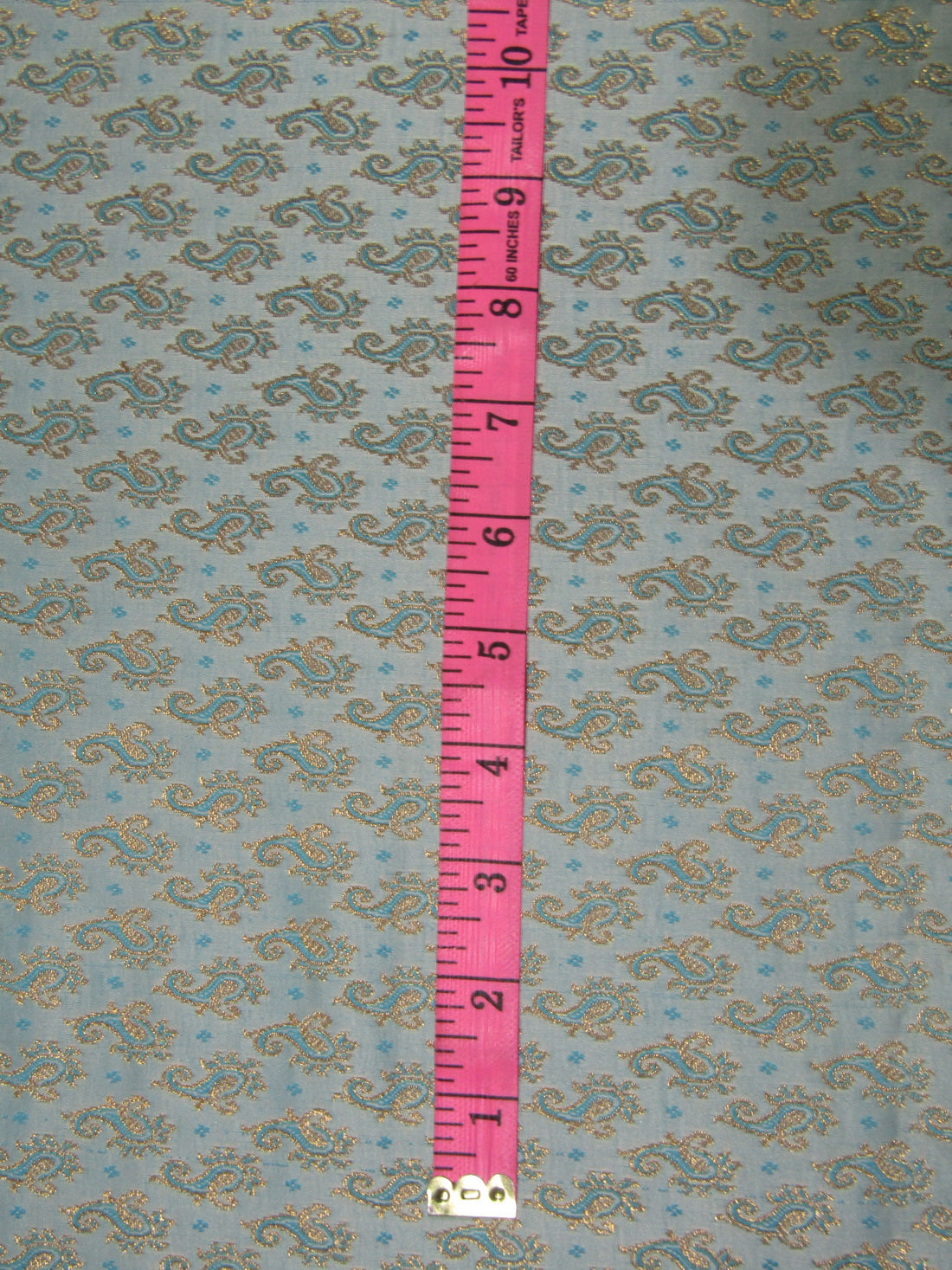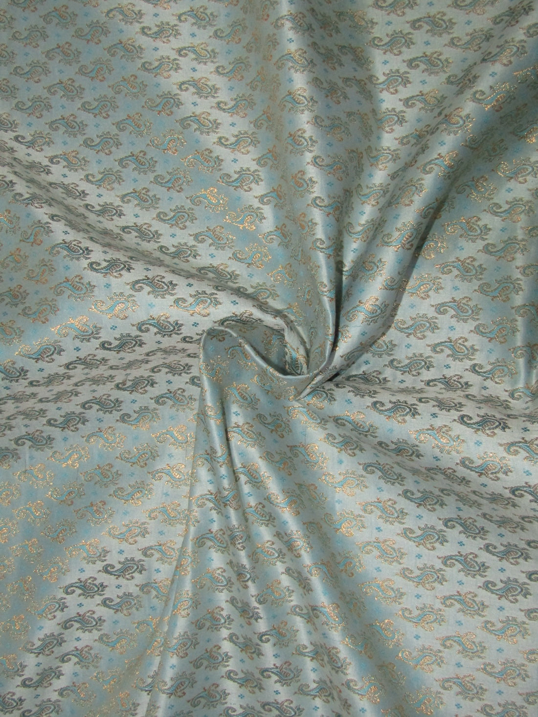 Silk Brocade Fabric BABY BLUE X METALLIC GOLD color 44"