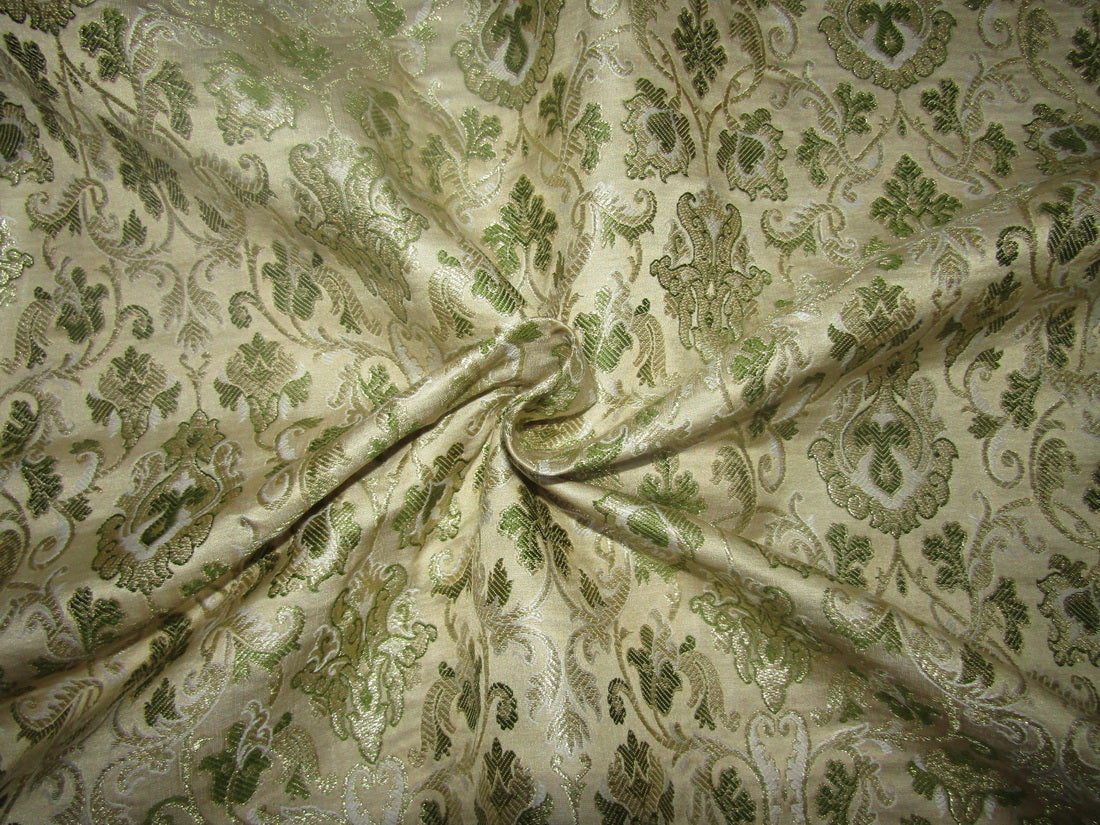 Silk Brocade fabric beige green x metallic gold color 44" wide BRO724[3]
