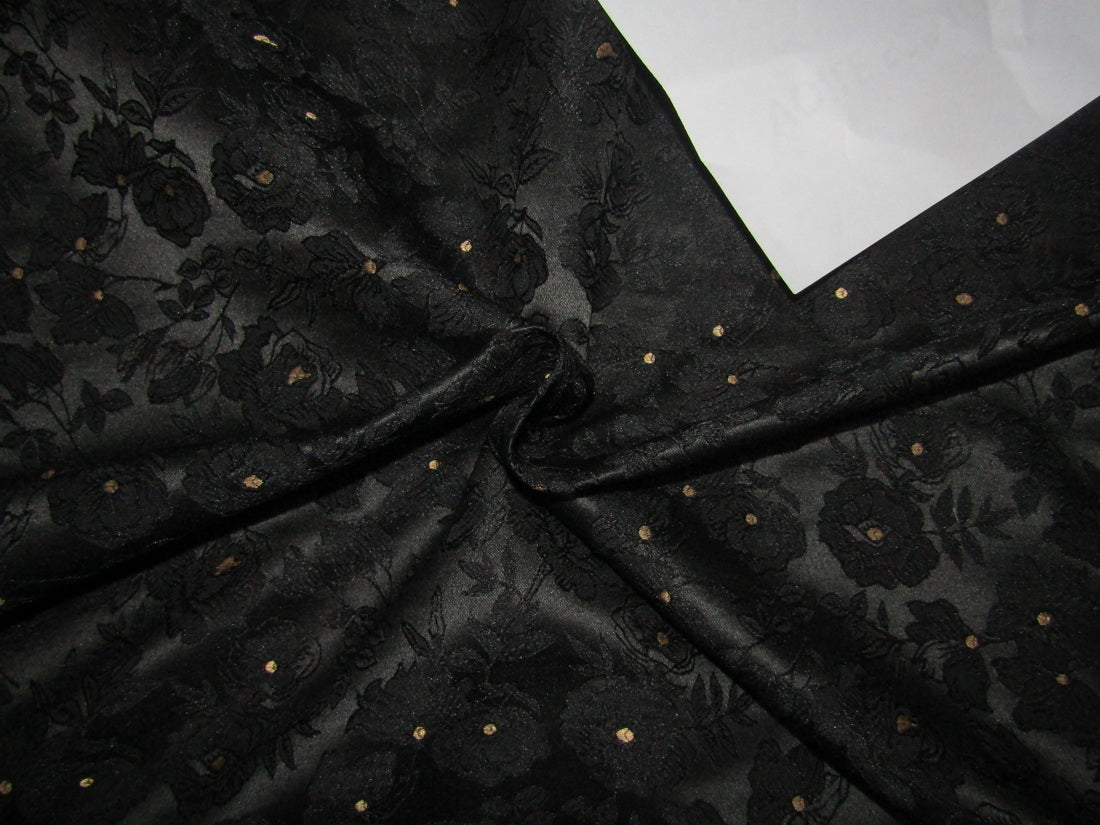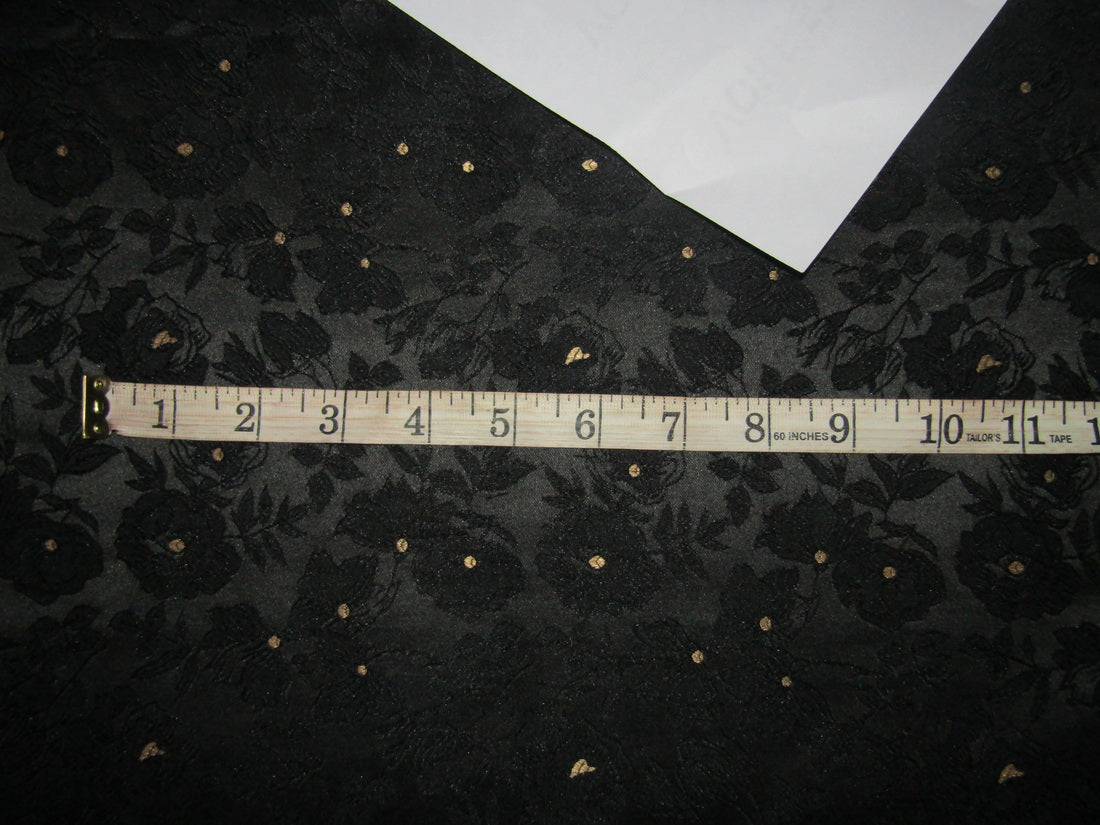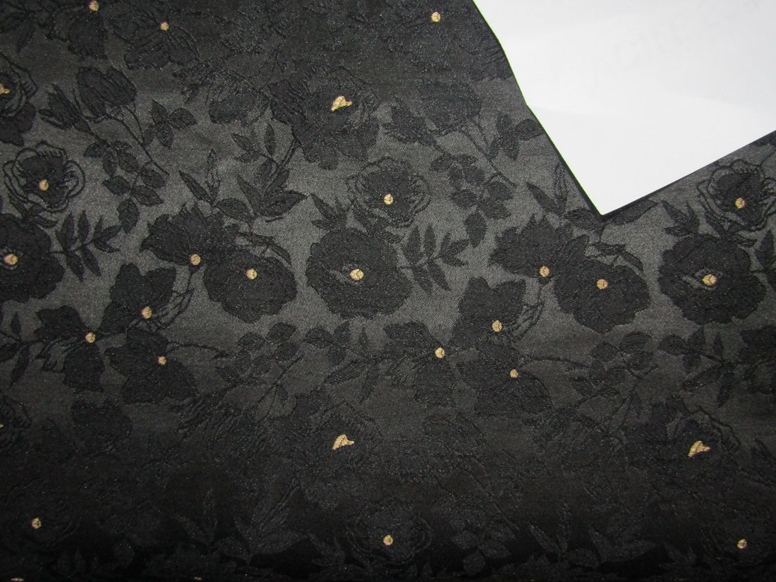 Silk Brocade fabric BLACK ROSES x metallic gold color 44" wide BRO741[3]