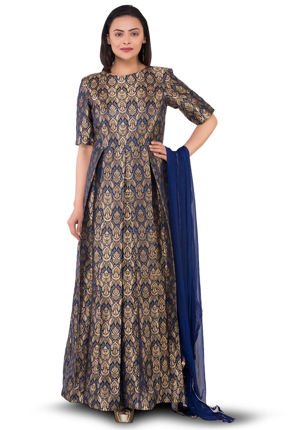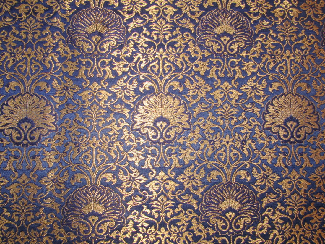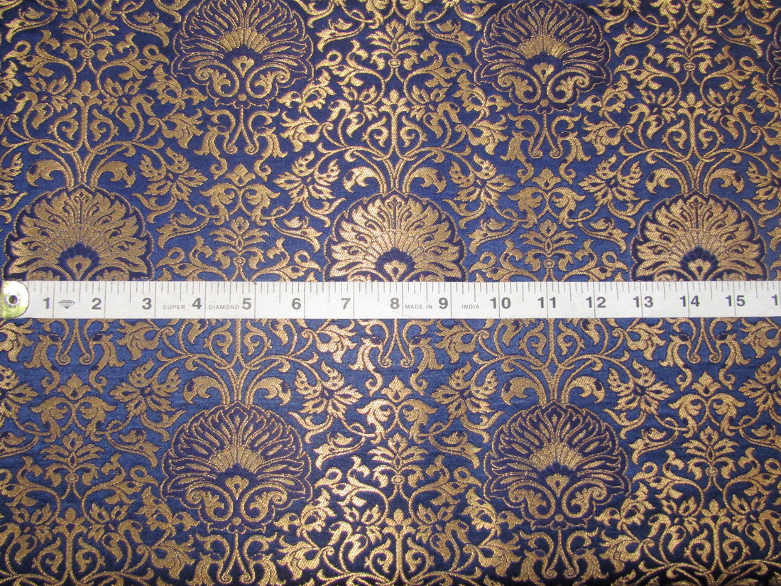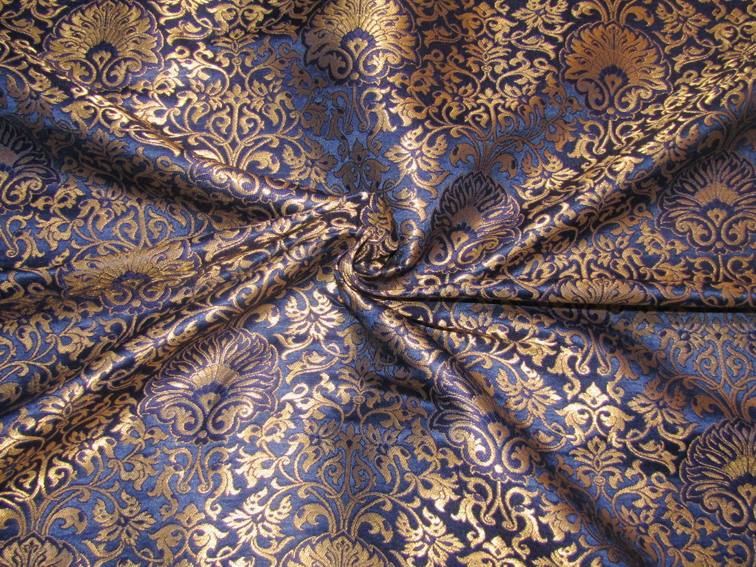 Silk Brocade fabric Blue x metallic gold color 44" wide BRO776[2]