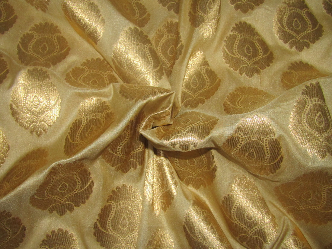 Silk Brocade fabric gold x metallic gold motifs color 44" wide BRO718[3]