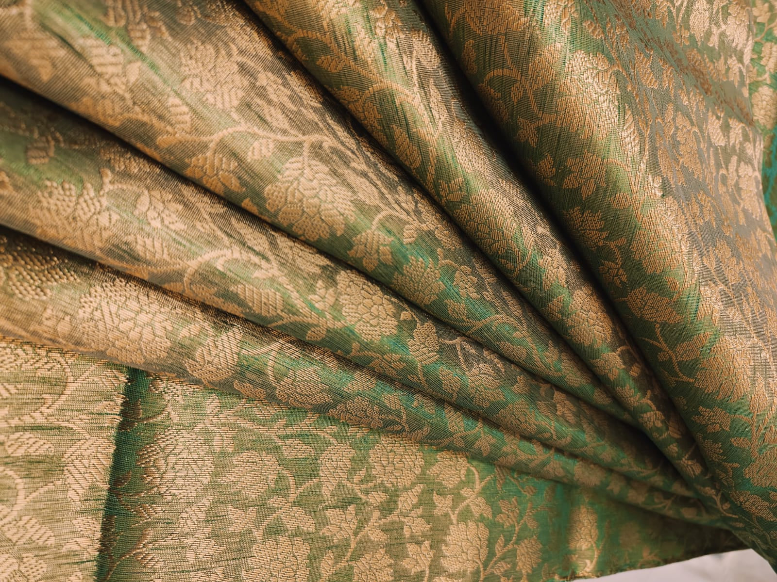As luxurious as it seems, the art of brocade has transcended from the age old era of opulence and royalty. Conceptualized as a naksha (design) on paper first, the nakshabandha (designer) translates the design on Banarasi silk weaves, using fine gauze or gold or silver threads with immaculate precision into patterns that range from artistic elaboration to minimalistic intricacy. Romance with royalty in your outfit daily.