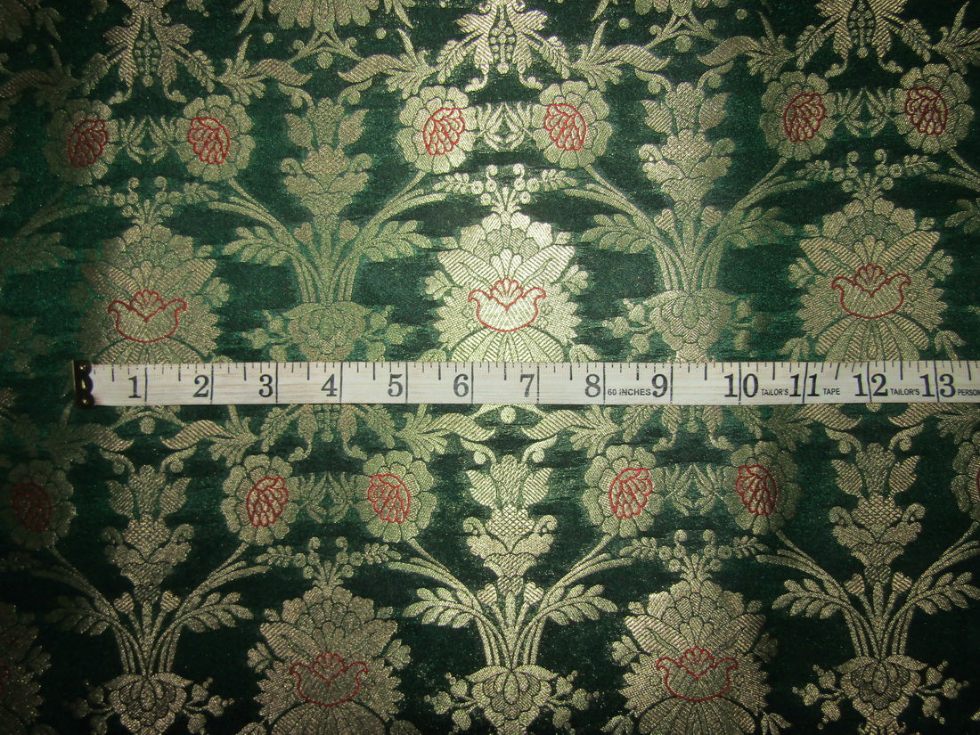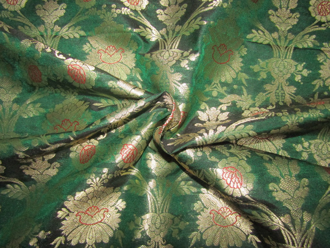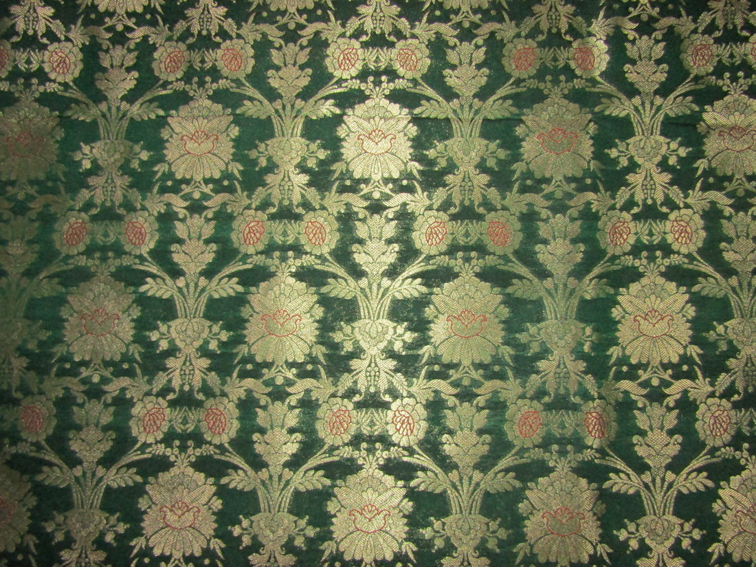 Silk Brocade fabric green x metallic gold color 44" wide BRO735[6]