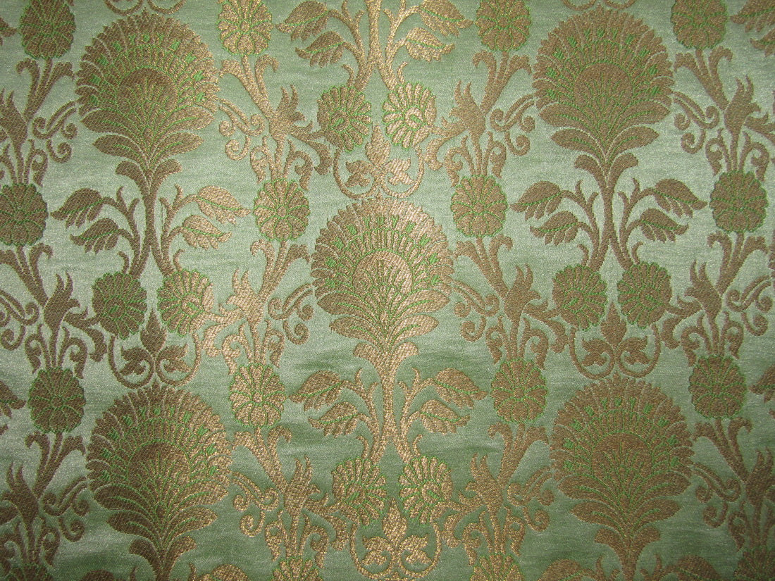 Silk Brocade fabric green x metallic gold 44" wide BRO745A[1]
