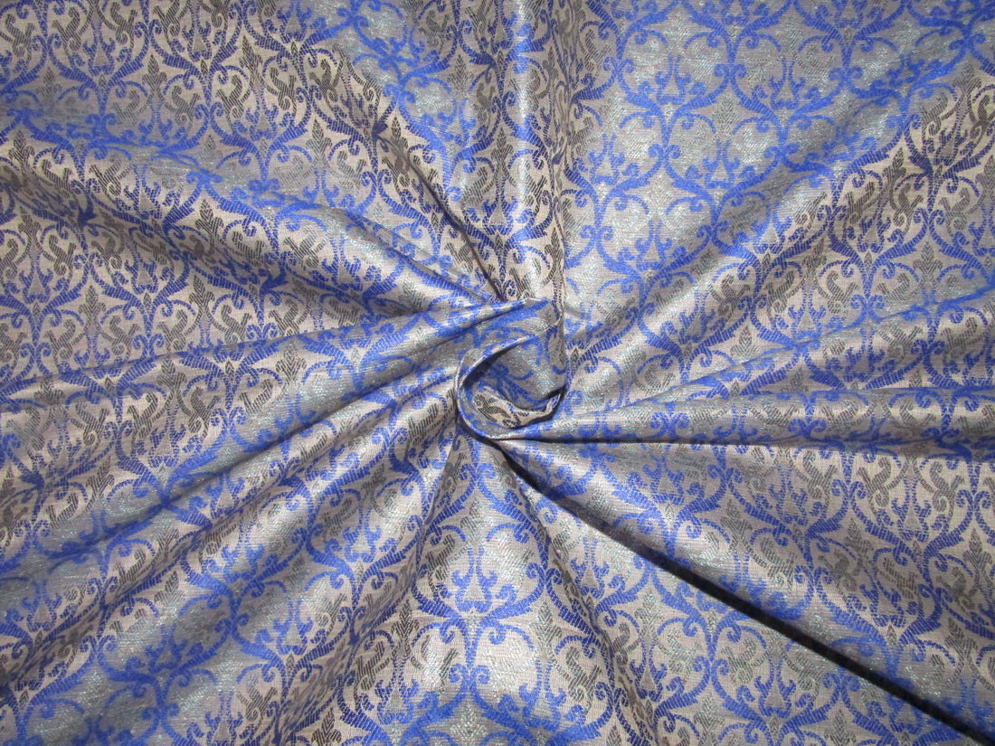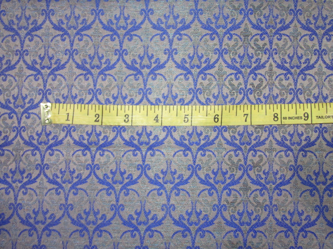 Silk Brocade fabric Grey x Royal blue color 44" wide BRO725[3]