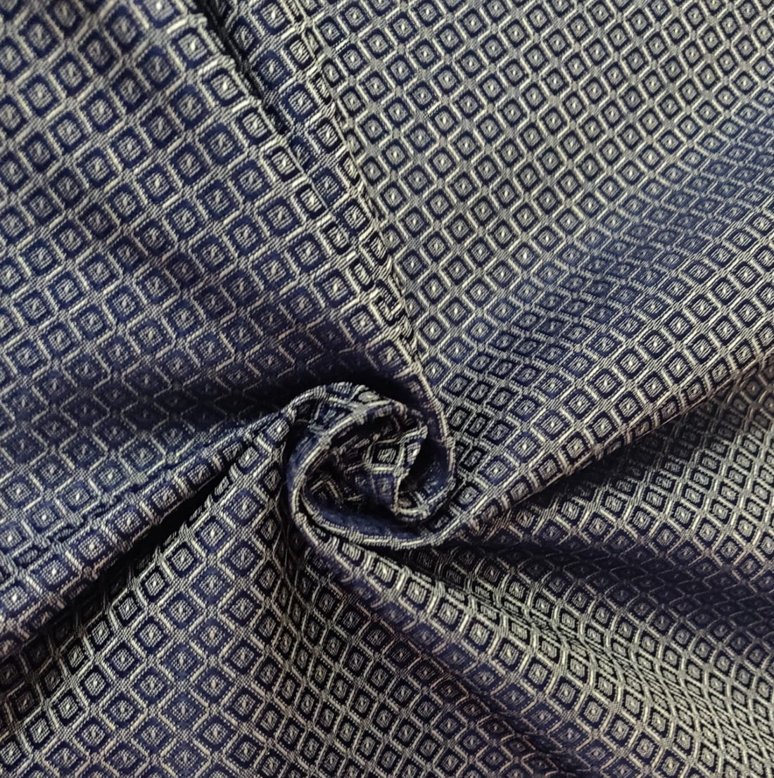 Silk Brocade fabric intricate geometric silver diamond and navy COLOR 44" wide BRO791A[3]