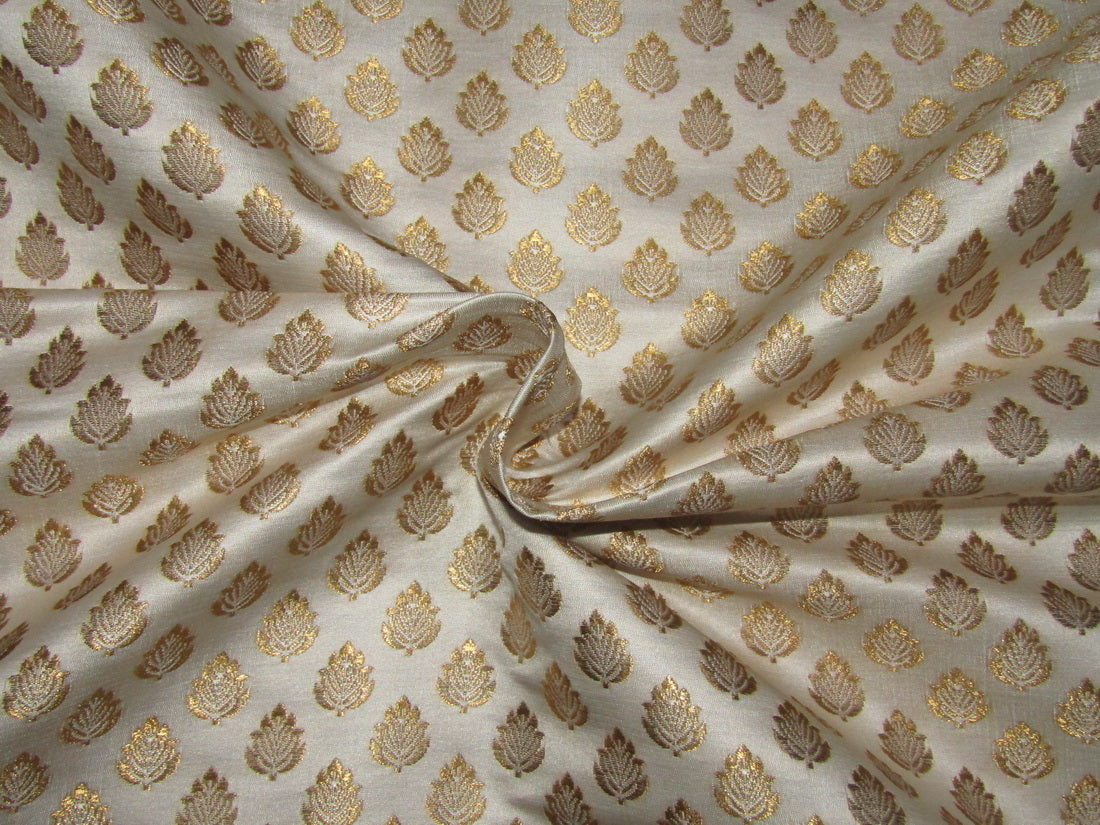 Silk Brocade fabric ivory x metallic gold color 44" wide BRO761[1]