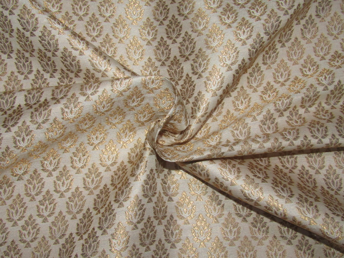 Silk Brocade fabric ivory x metallic gold color 44" wide BRO761[2]