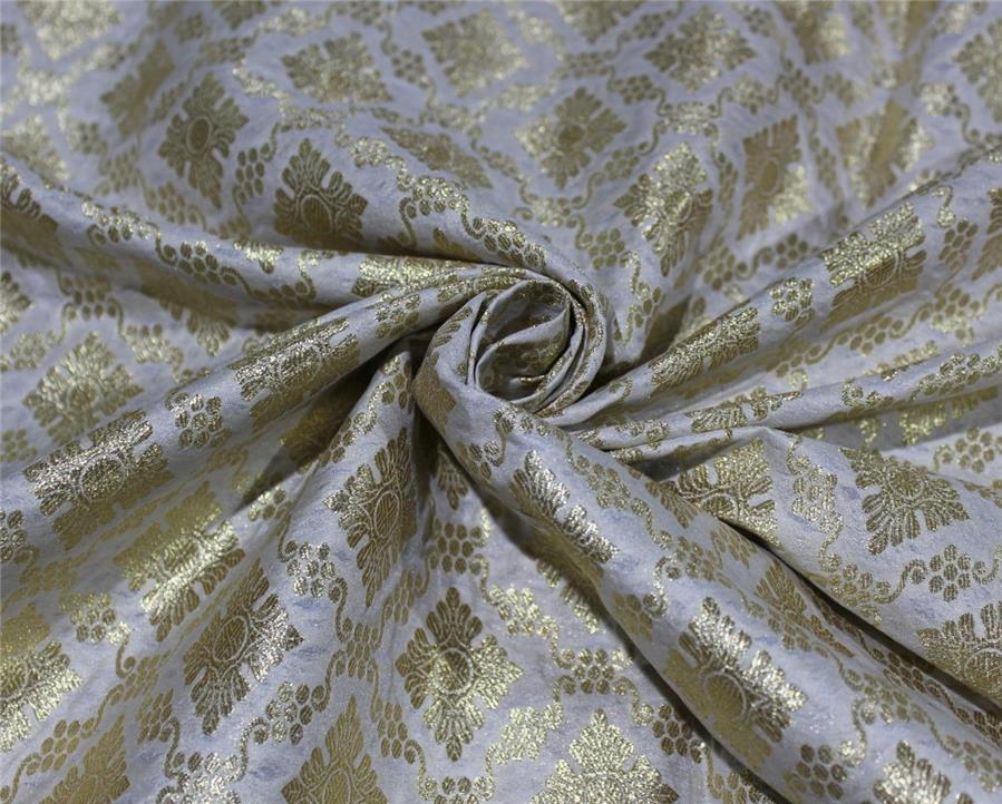 Silk Brocade Fabric Ivory x Metallic Gold Color 44" wide BRO655[5]