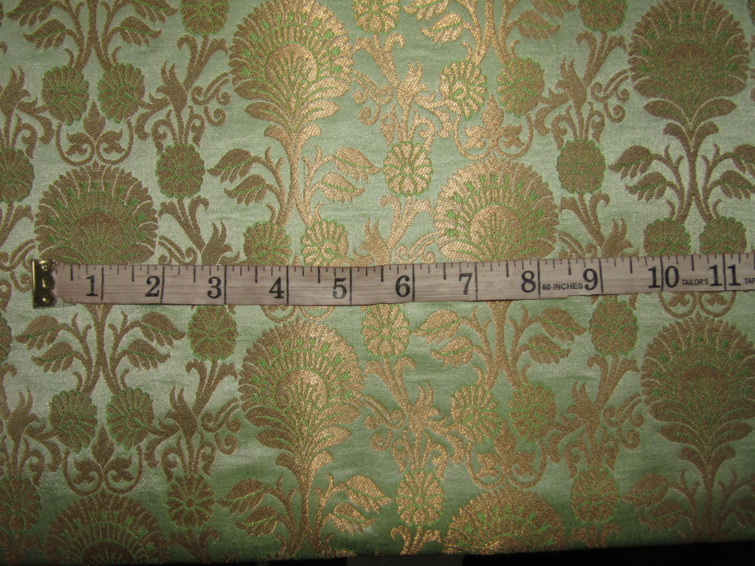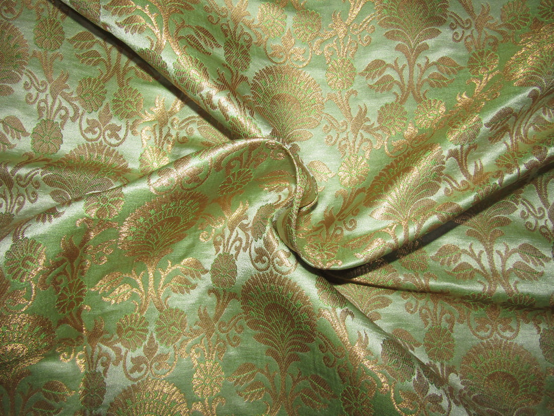 Silk Brocade fabric mint green x metallic gold color 44" wide BRO745A[1]