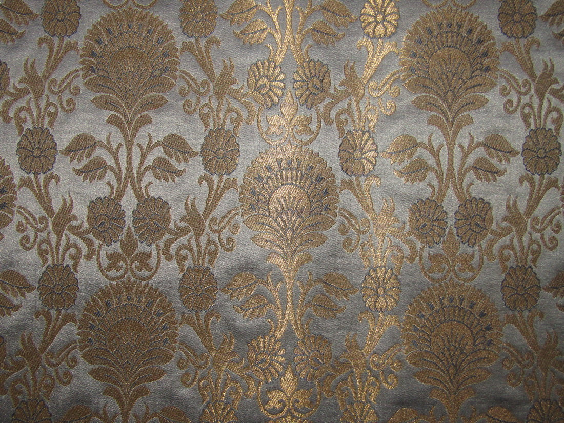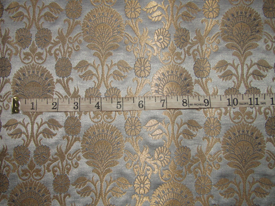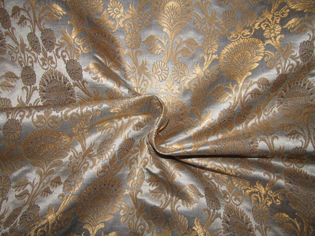 Silk Brocade fabric silver grey x metallic gold color 44" wide BRO745A[2]