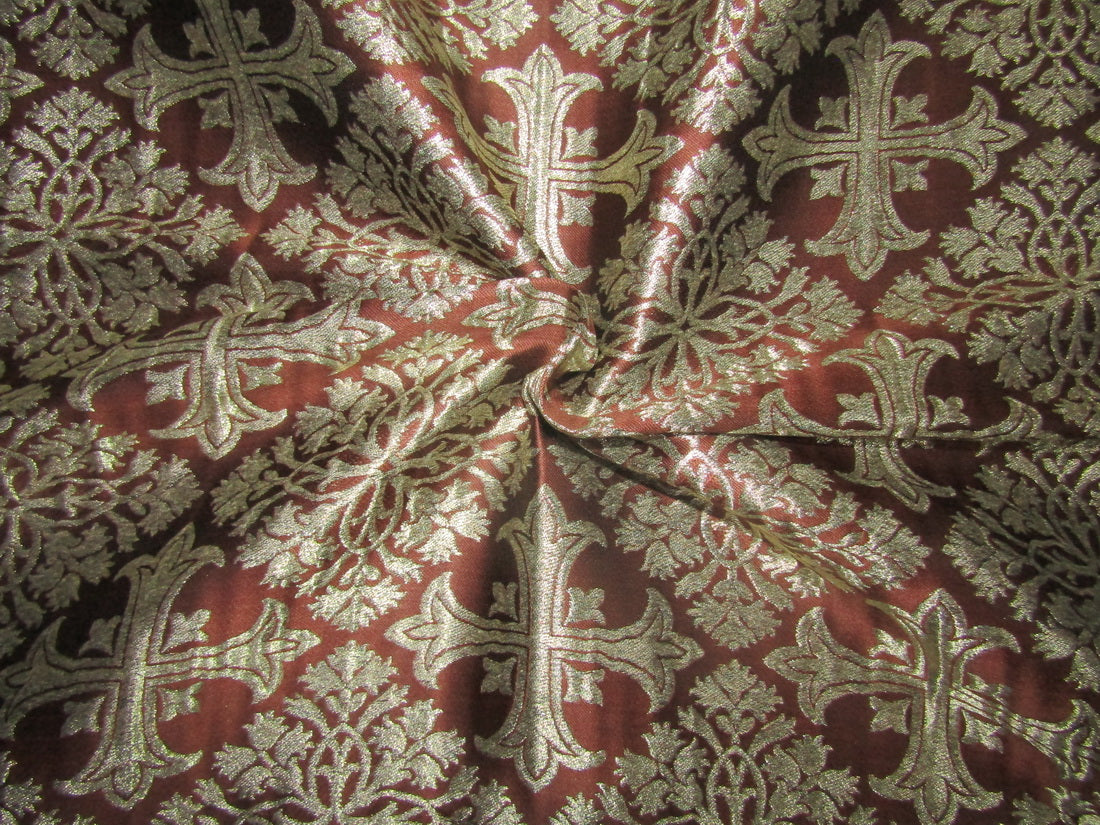Silk Brocade fabric VESTMENT brown x gold color 44" wide BRO743[2]