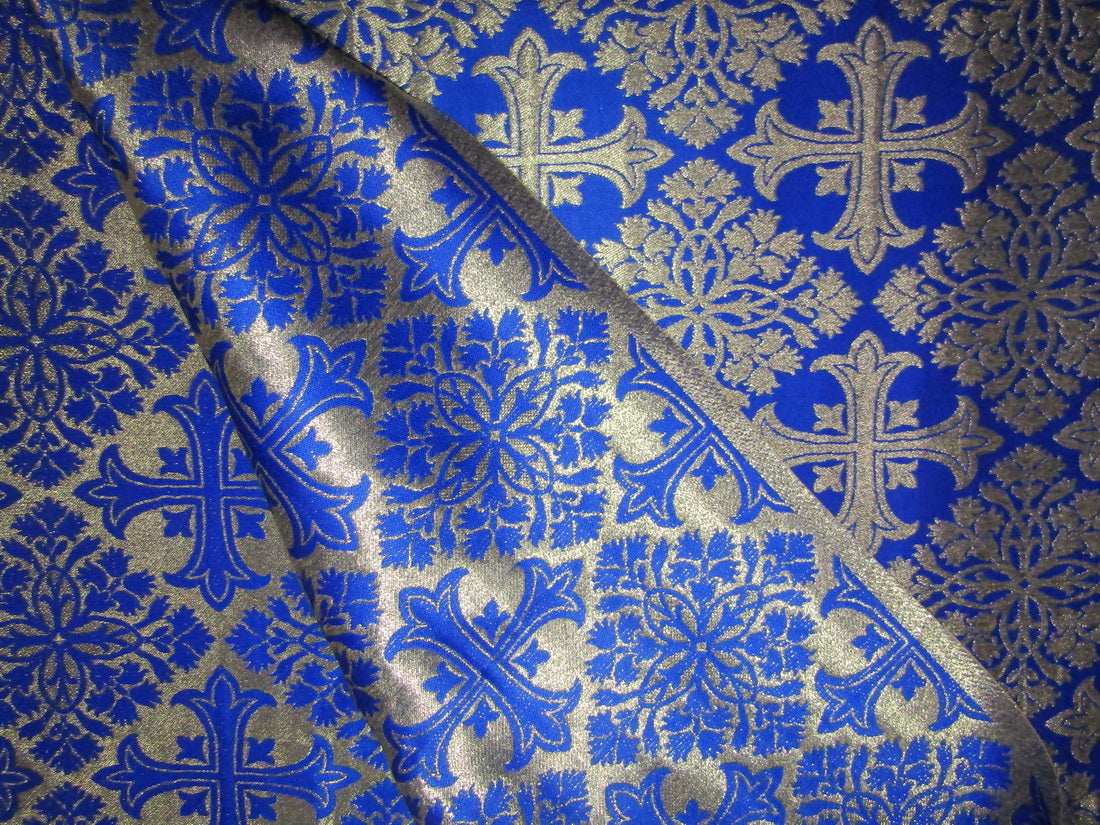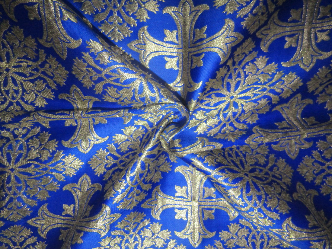 Silk Brocade fabric VESTMENT royal blue x gold color 44" wide BRO743[3]