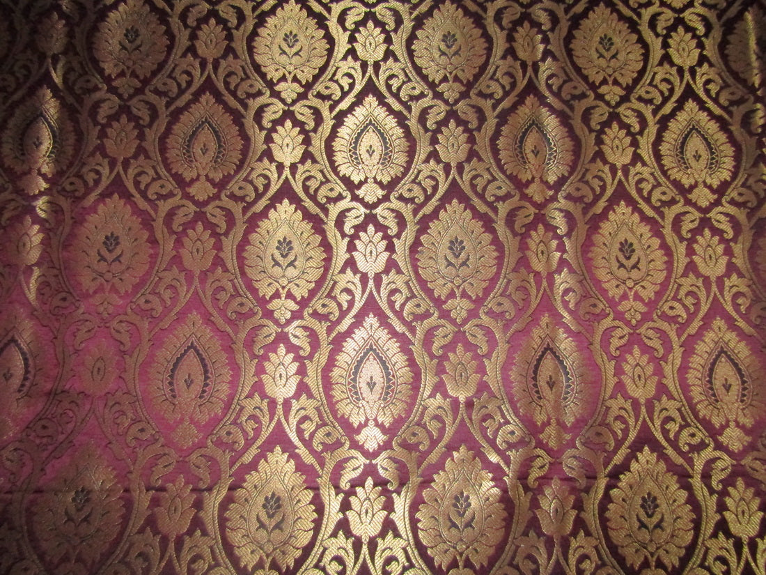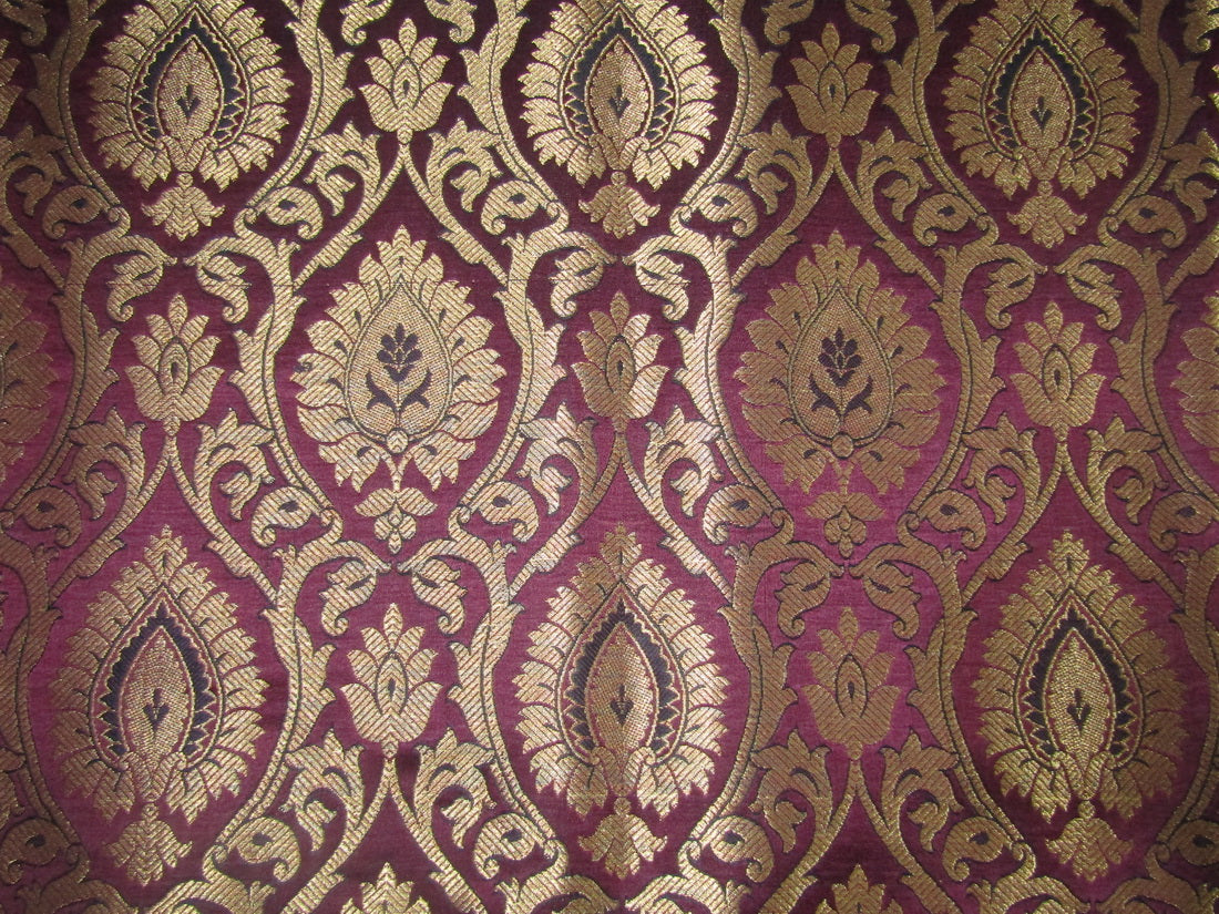 Silk Brocade Fabric wine x metallic gold 44" wide BRO705[1]